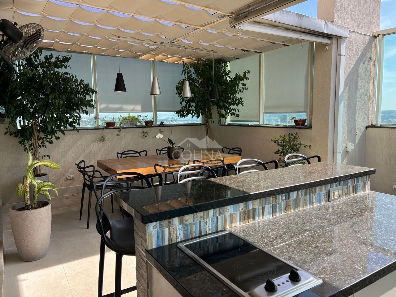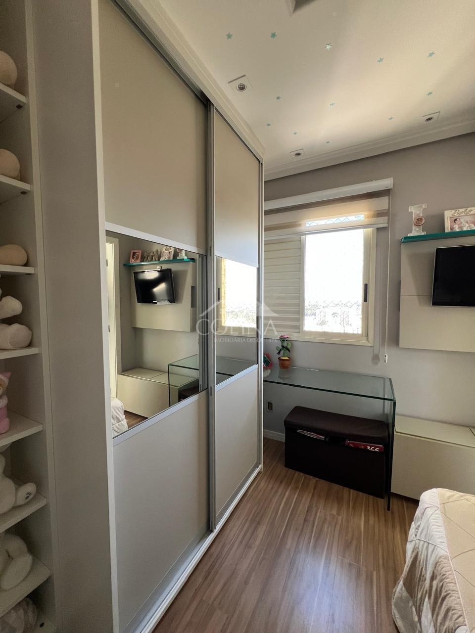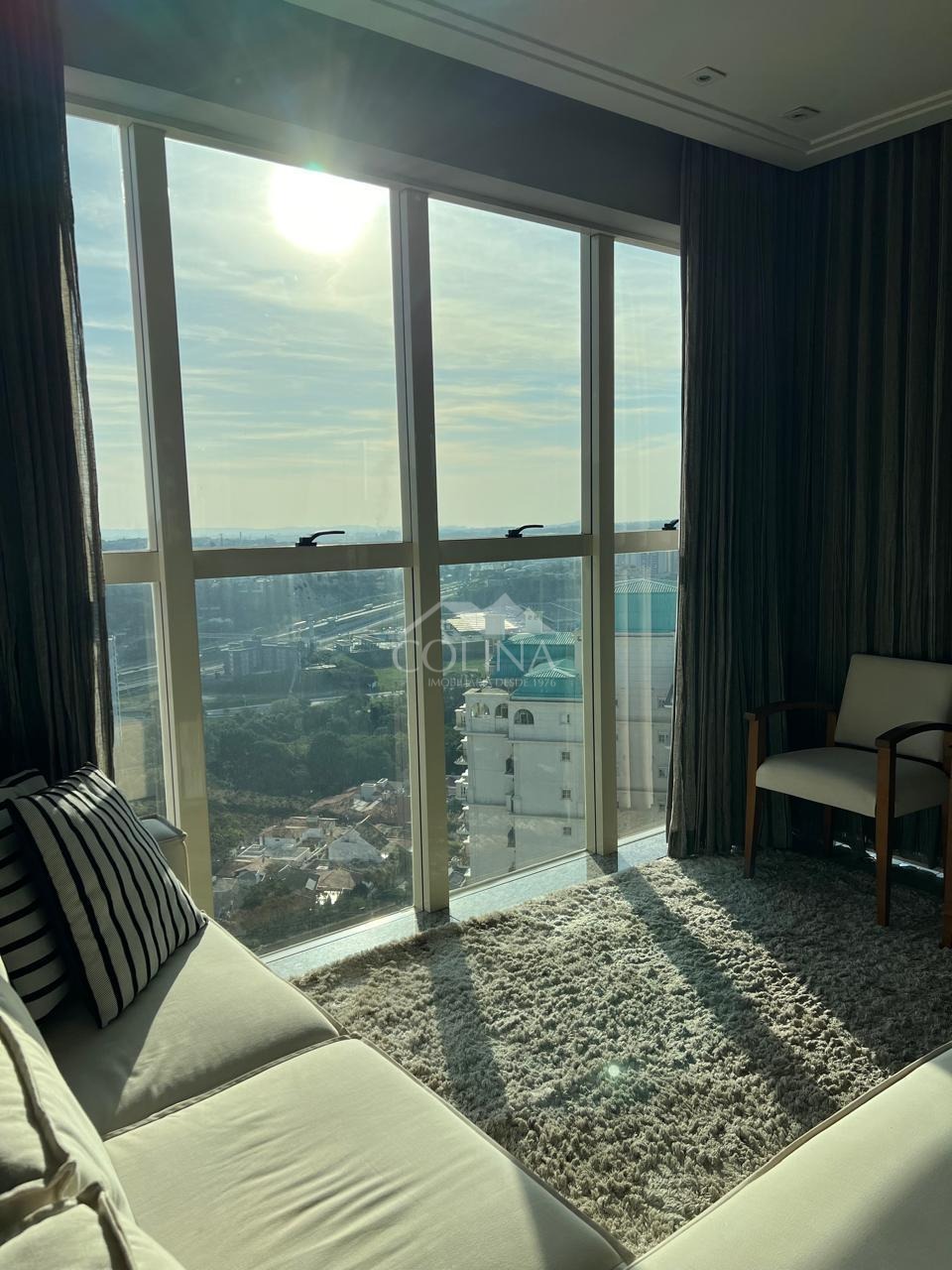 Apartamento de 246m², sendo no piso principal com 04 suítes com armários planejados (1 master com closet, ar condicionado e varanda), escritório planejado; no Piso Superior: living amplo c/ ambientes espaçosos e bem distribuídos com linda vista para Serra do Japi e integrados a área gourmet com cobertura retrátil e churrasqueira, copa e cozinha planejadas (pontos de tomada 110v), área de serviço c/wc, 3 vagas, aquecedor à gás, etc...
