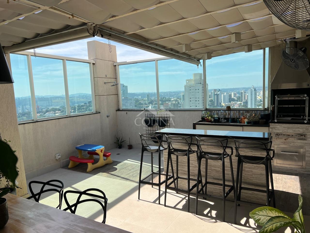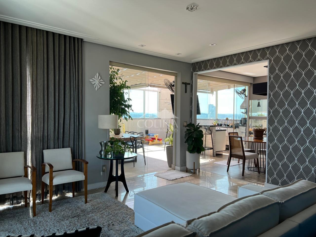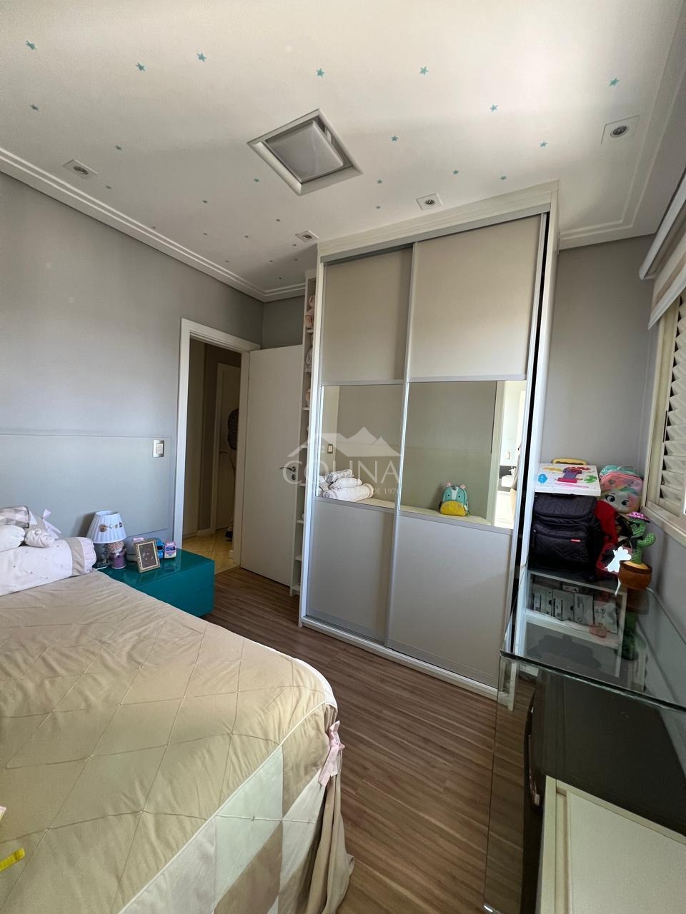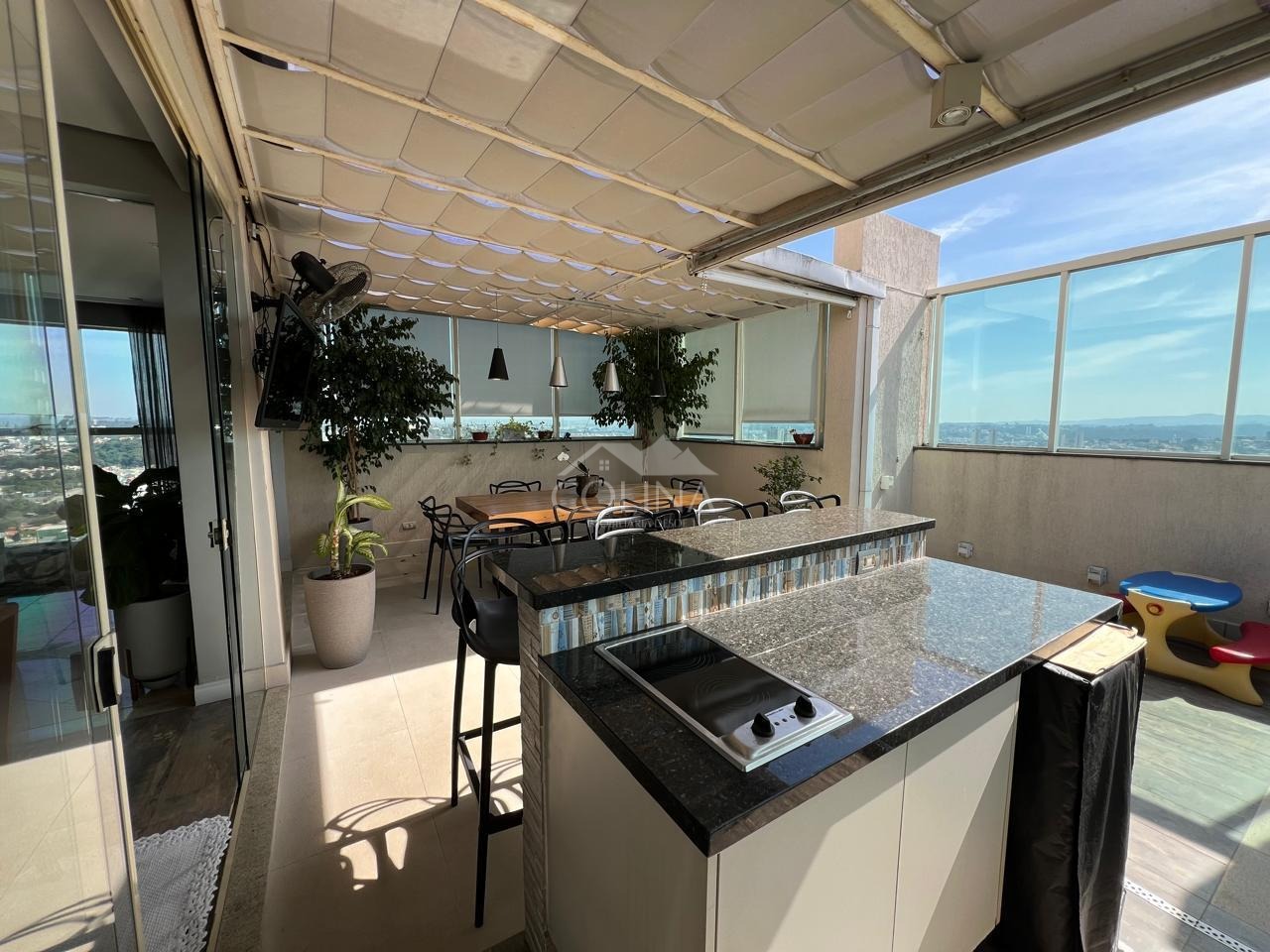 Apartamento de 246m², sendo no piso principal com 04 suítes com armários planejados (1 master com closet, ar condicionado e varanda), escritório planejado; no Piso Superior: living amplo c/ ambientes espaçosos e bem distribuídos com linda vista para Serra do Japi e integrados a área gourmet com cobertura retrátil e churrasqueira, copa e cozinha planejadas (pontos de tomada 110v), área de serviço c/wc, 3 vagas, aquecedor à gás, etc...