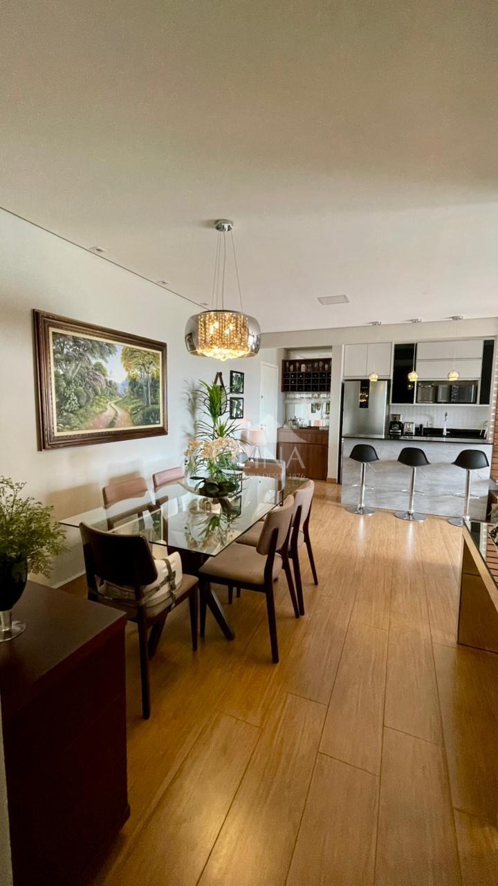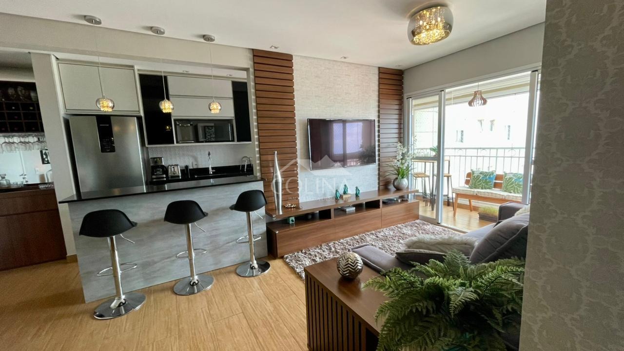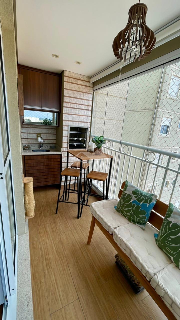 Com 80,00 m2 sendo 3 quartos com armários planejados (1 feito escritório), sendo 1 suíte, sala 2 ambientes. sacada gourmet com churrasqueira a carvão e vista para o bosque, cozinha com armários planejados e cooktop, área de serviço com passagem para sacada, aquecedor a gás banheiro social e 2 vagas de garagem.