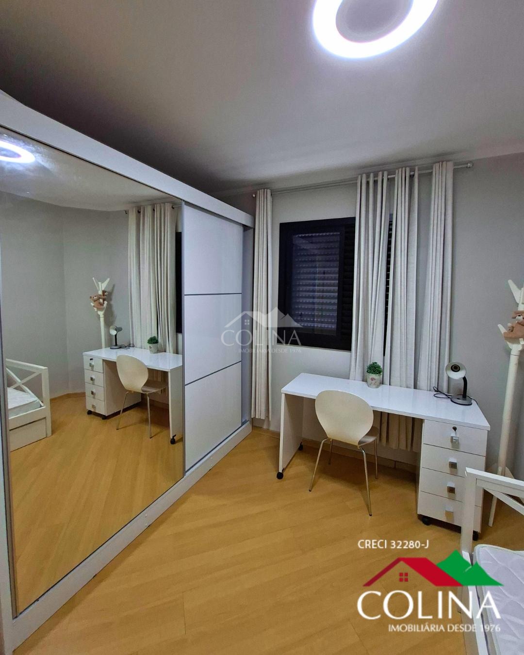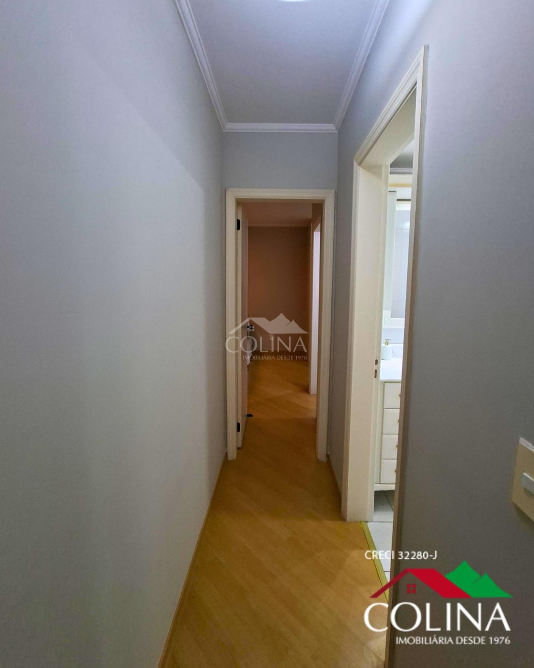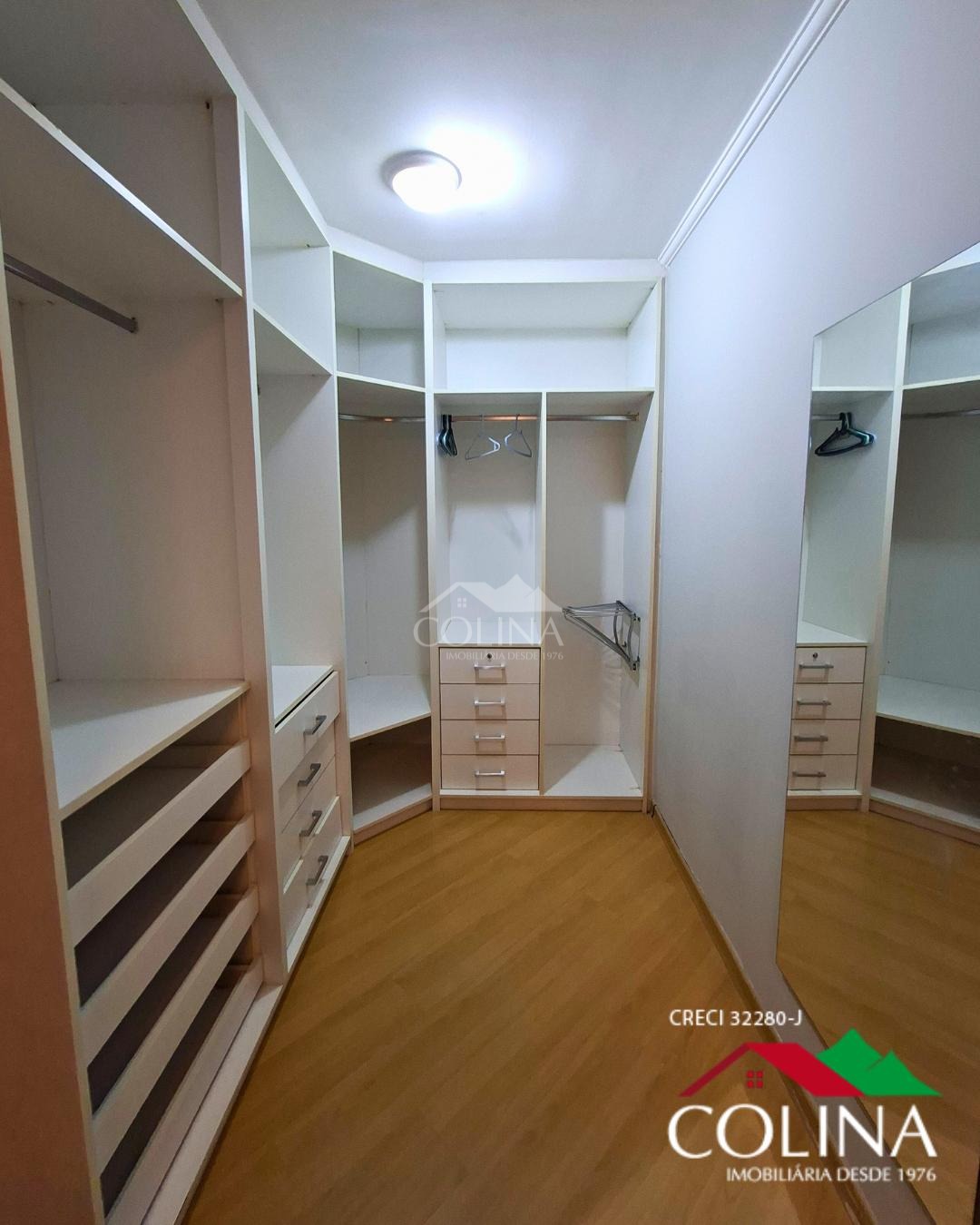 03 Quartos, sendo 1 suíte com closet e com armarios planejados em um dormitório e outro com estantes, banheiros completos com box, gabinete, cozinha planejada, área de serviços sala 02 ambientes, lavabo, varanda,