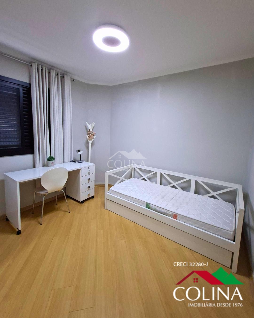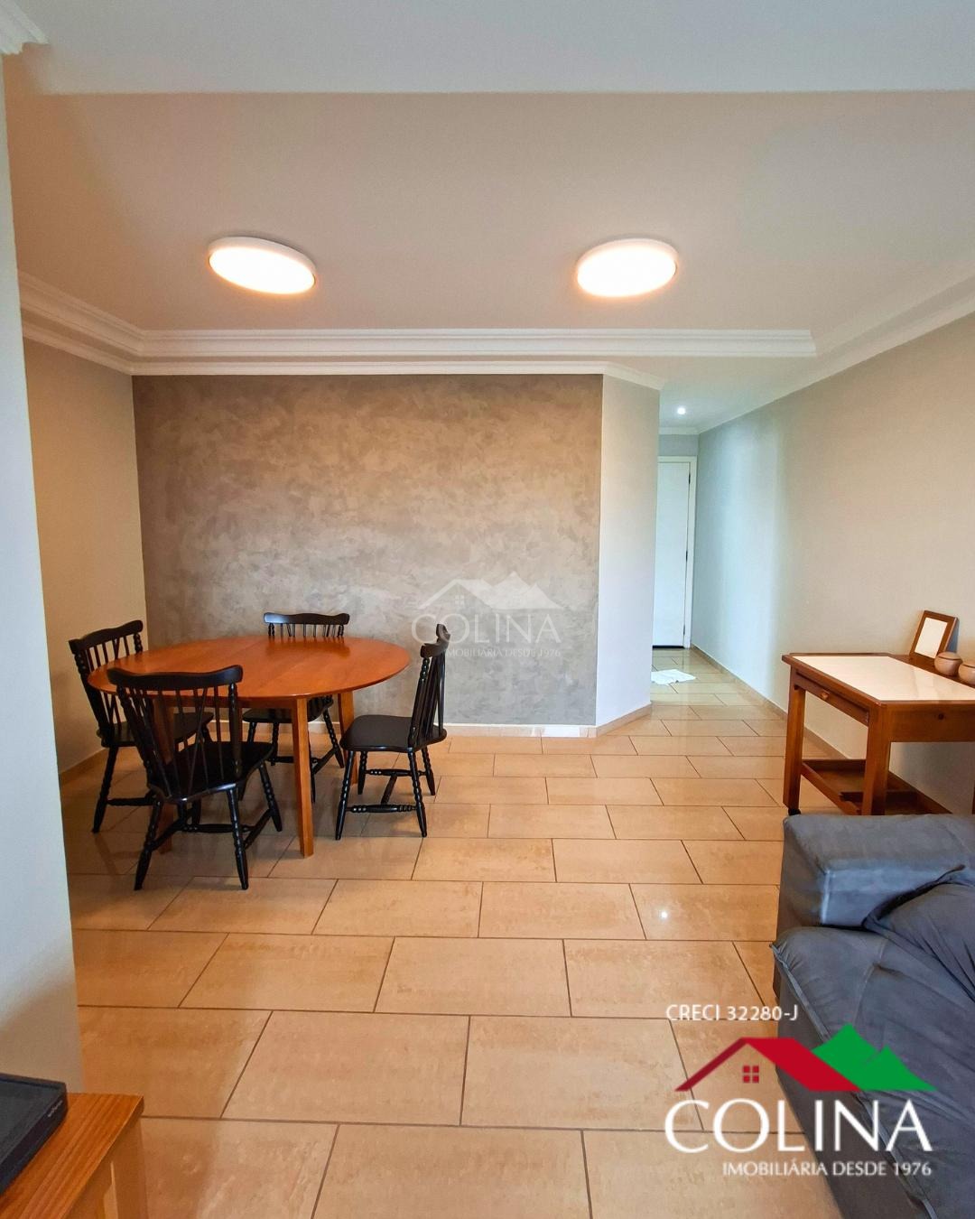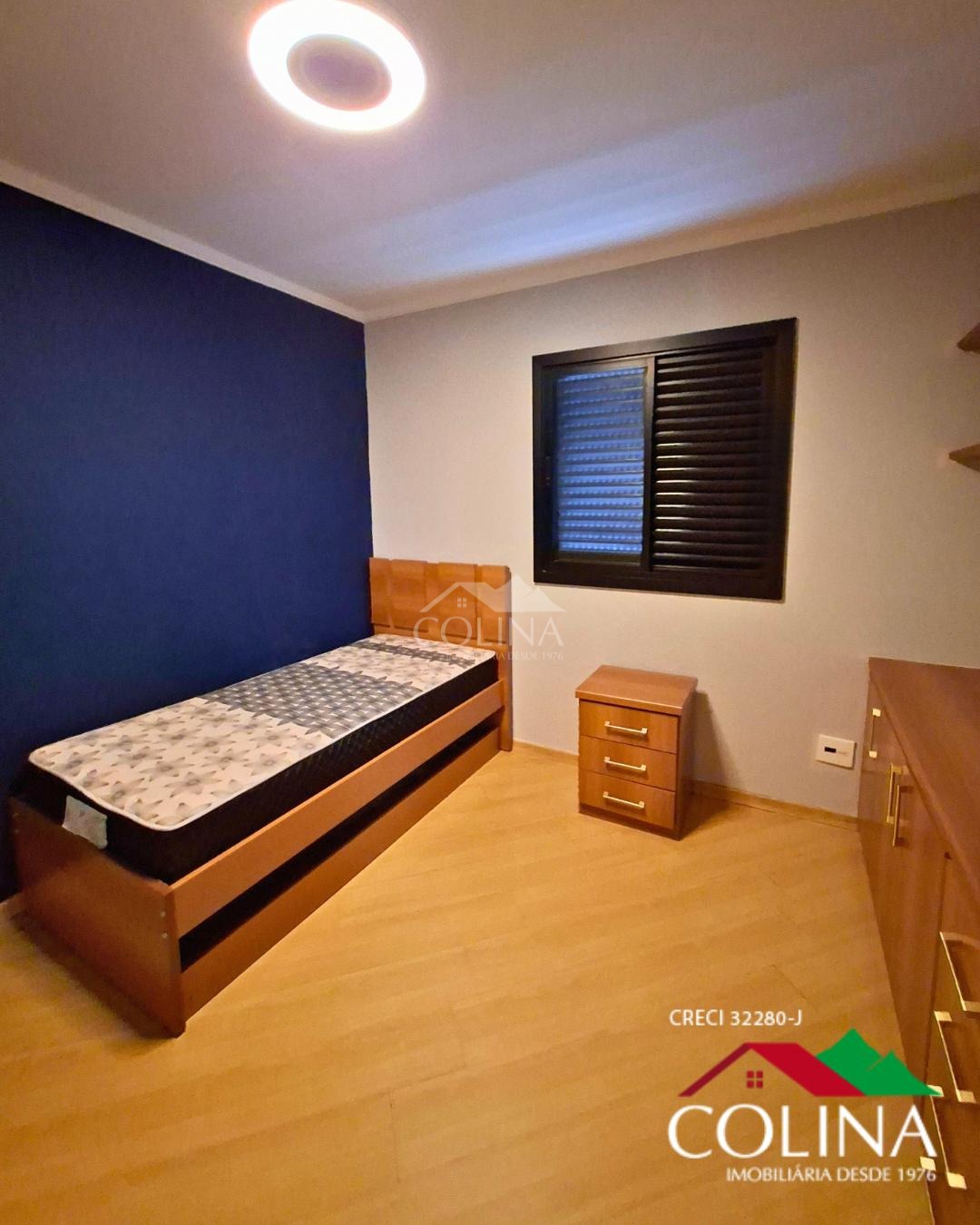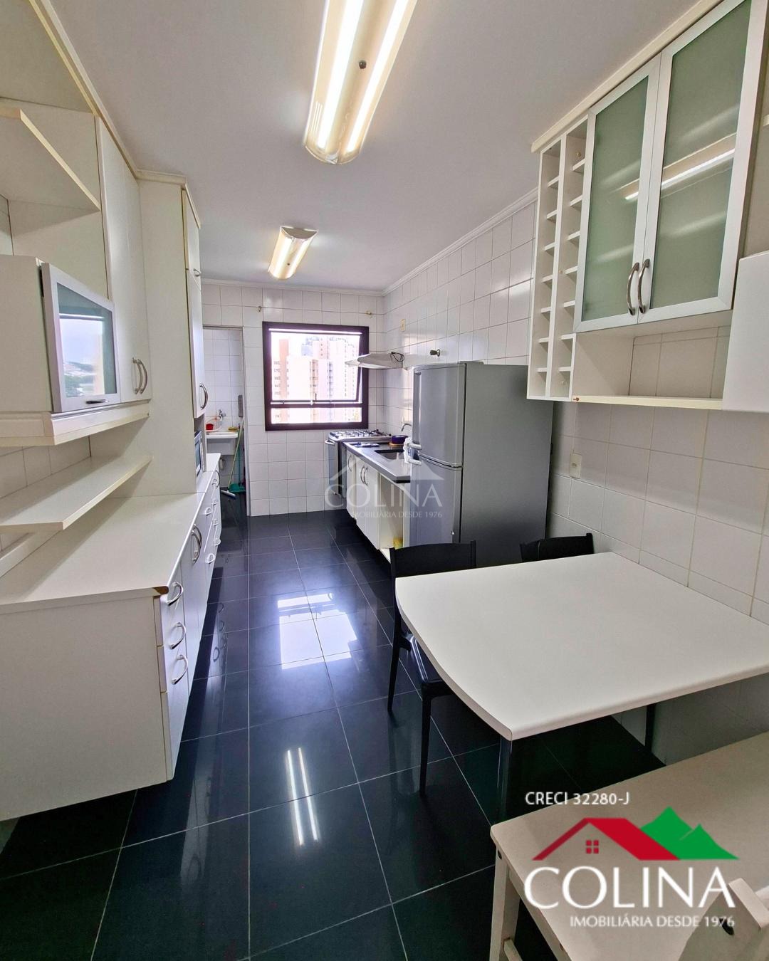 03 Quartos, sendo 1 suíte com closet e com armarios planejados em um dormitório e outro com estantes, banheiros completos com box, gabinete, cozinha planejada, área de serviços sala 02 ambientes, lavabo, varanda,