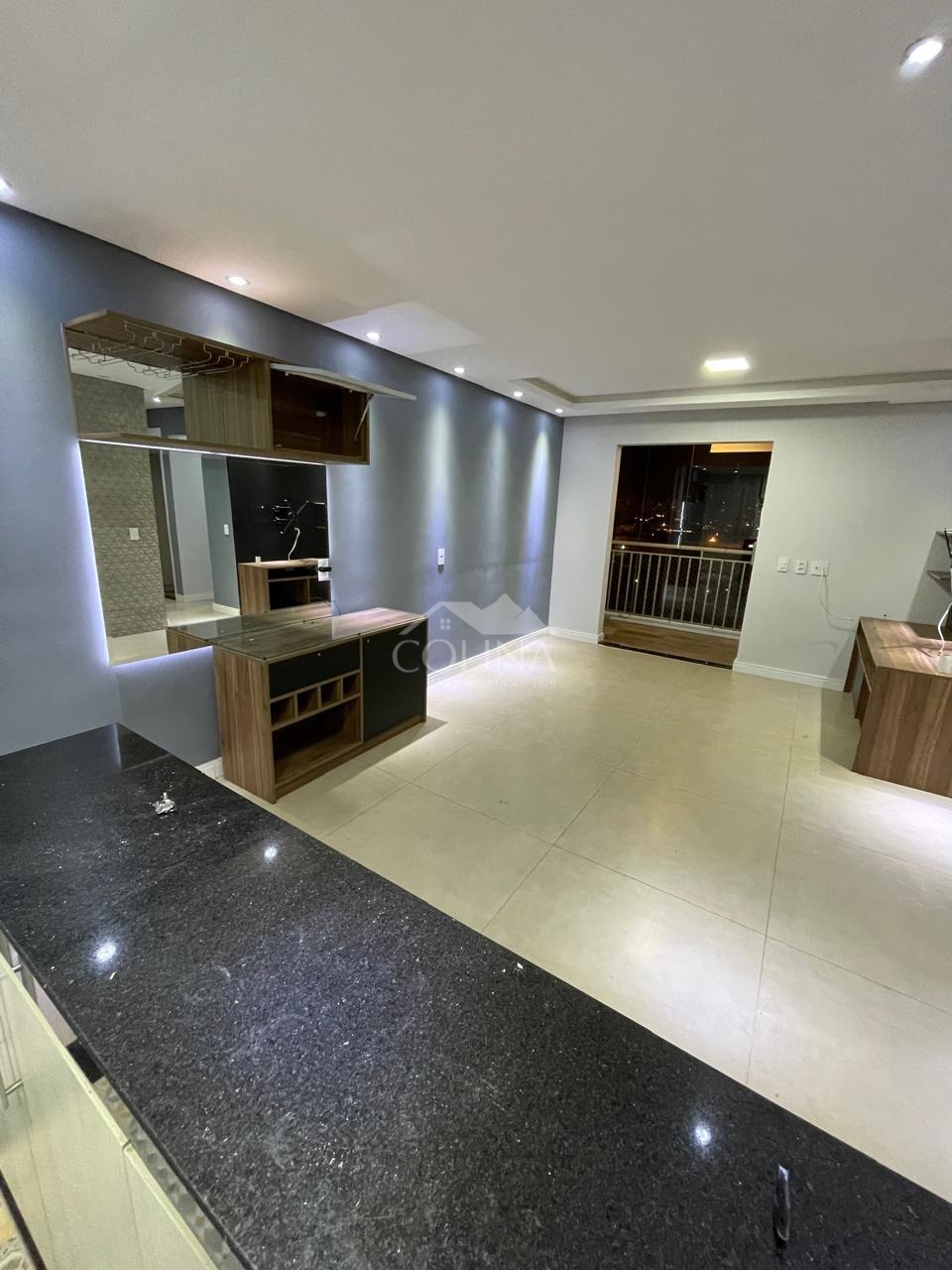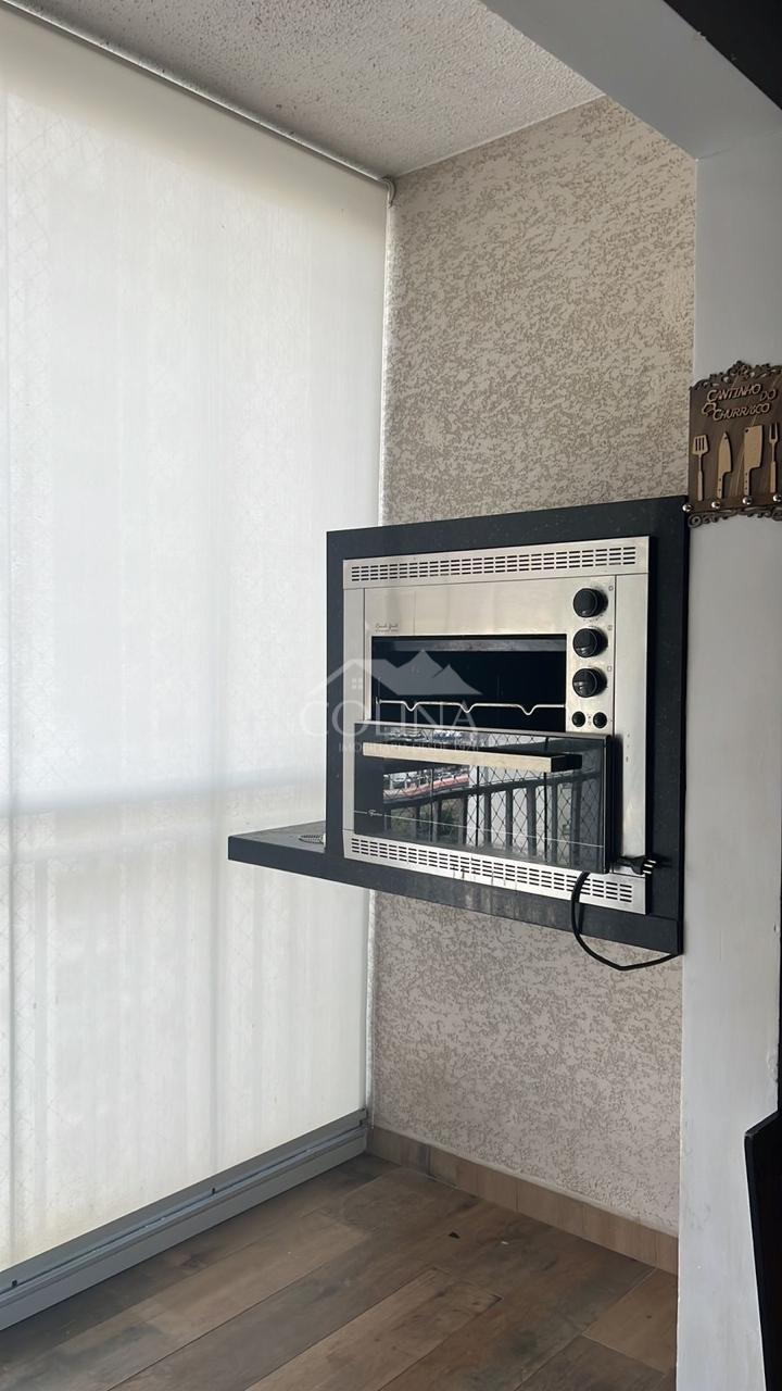 3 quarto com armários planejados e 1 suite, 1 banheiro, sala dois ambientes, sacada vidro e churrasqueira elétrica,1 cozinha planejada , lavanderia, garagem rotativa para 2 veiculos. Sol da tarde.