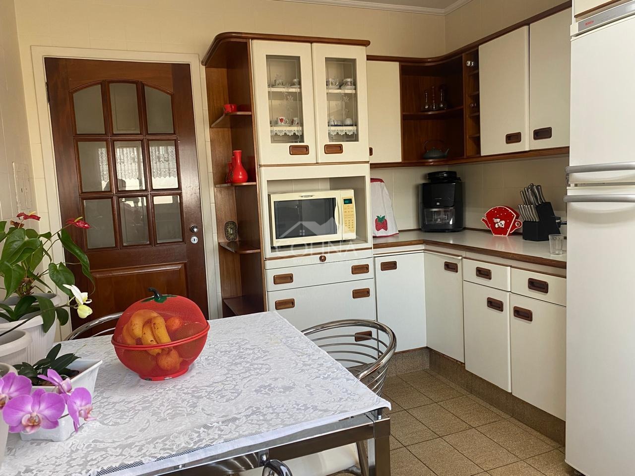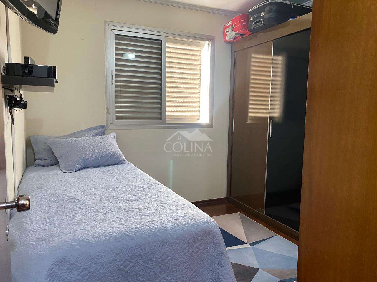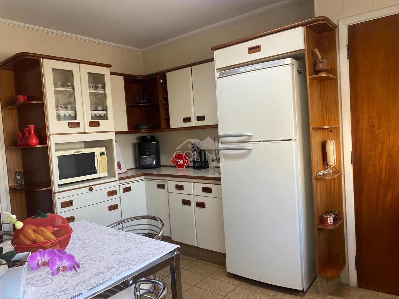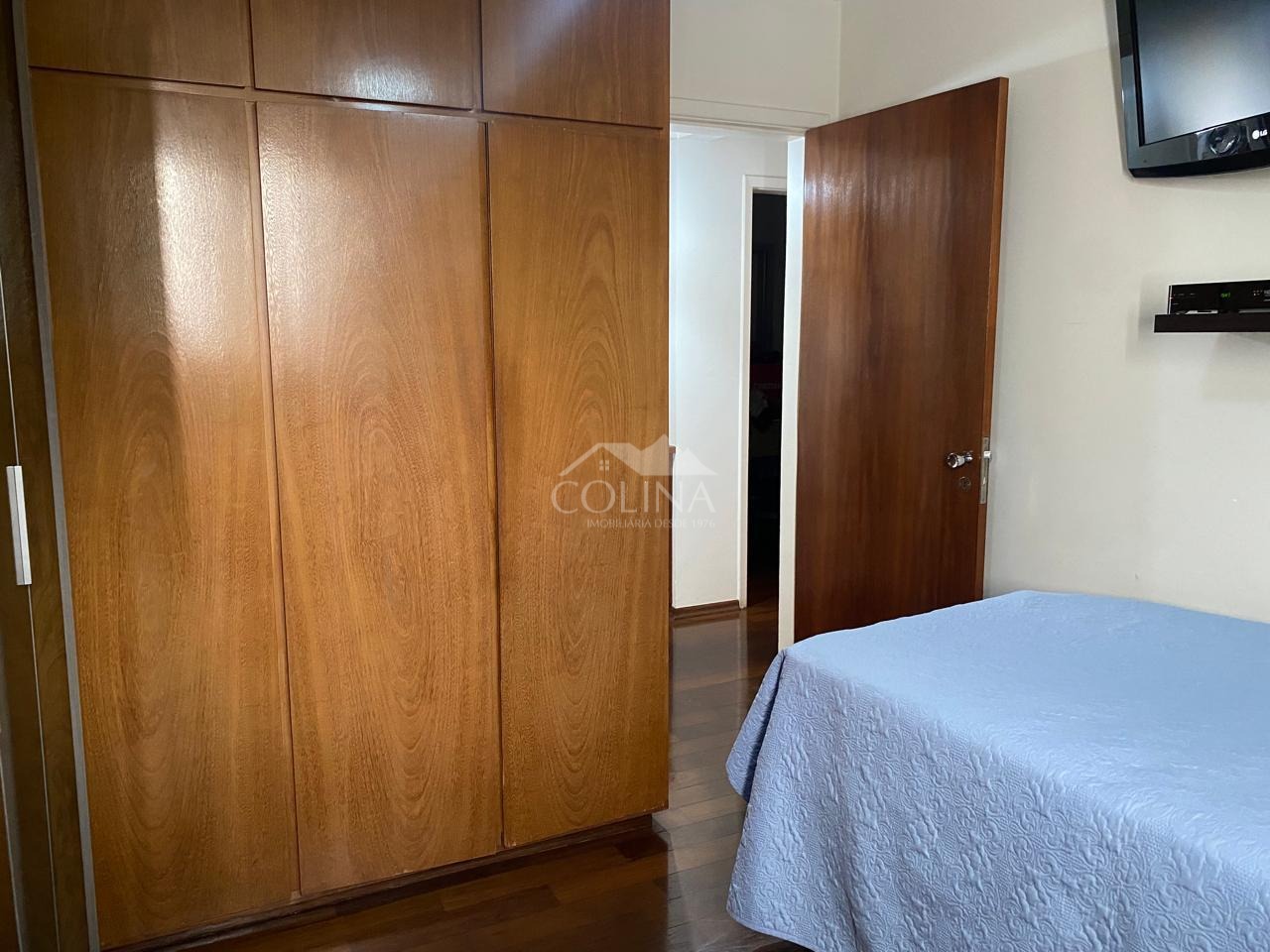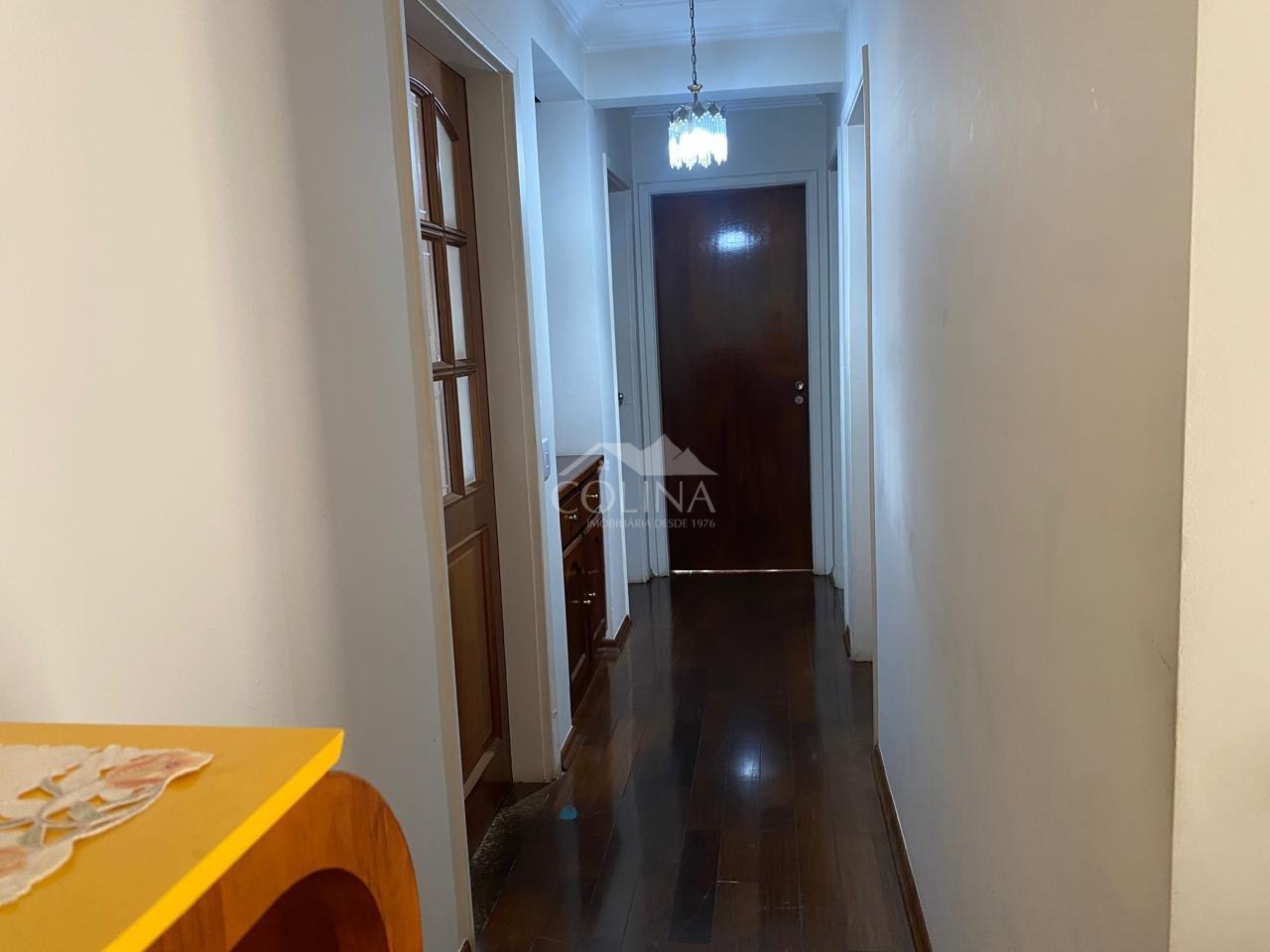 O apartamento com 120 m2 tem piso de madeira, 3 quartos, sendo 1 suíte com sacada, sendo 2 com armários, sala para 2 ambientes e com sacada, cozinha planejada, banheiros com torneiras quentes nas pias, corredor com armário, lavanderia ampla com armário e com mais um quartinho de despejo que pode se tornar mais um banheiro, closet. Ótima vista panorâmica.