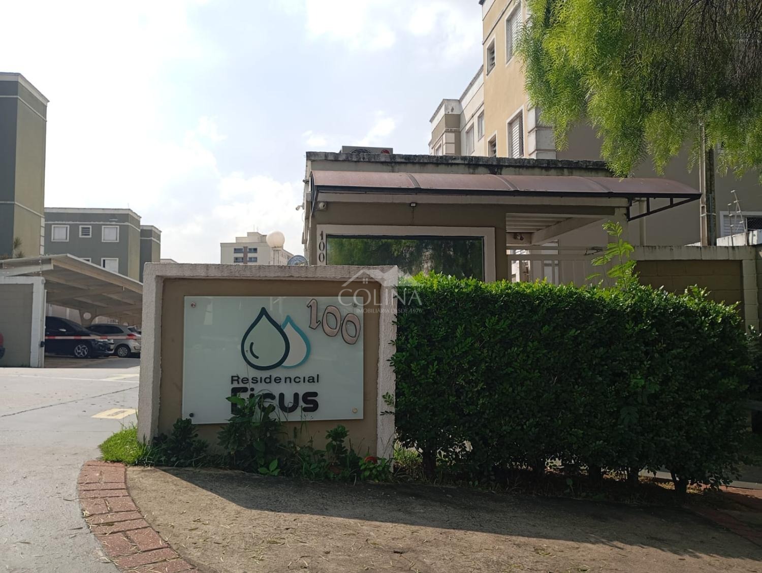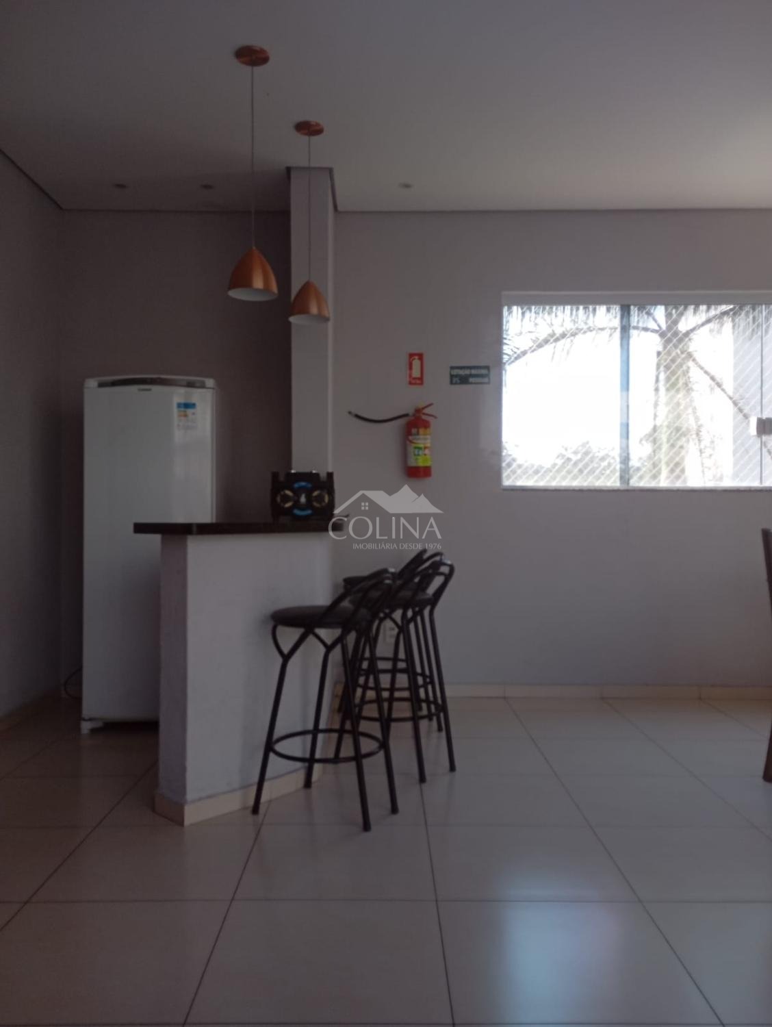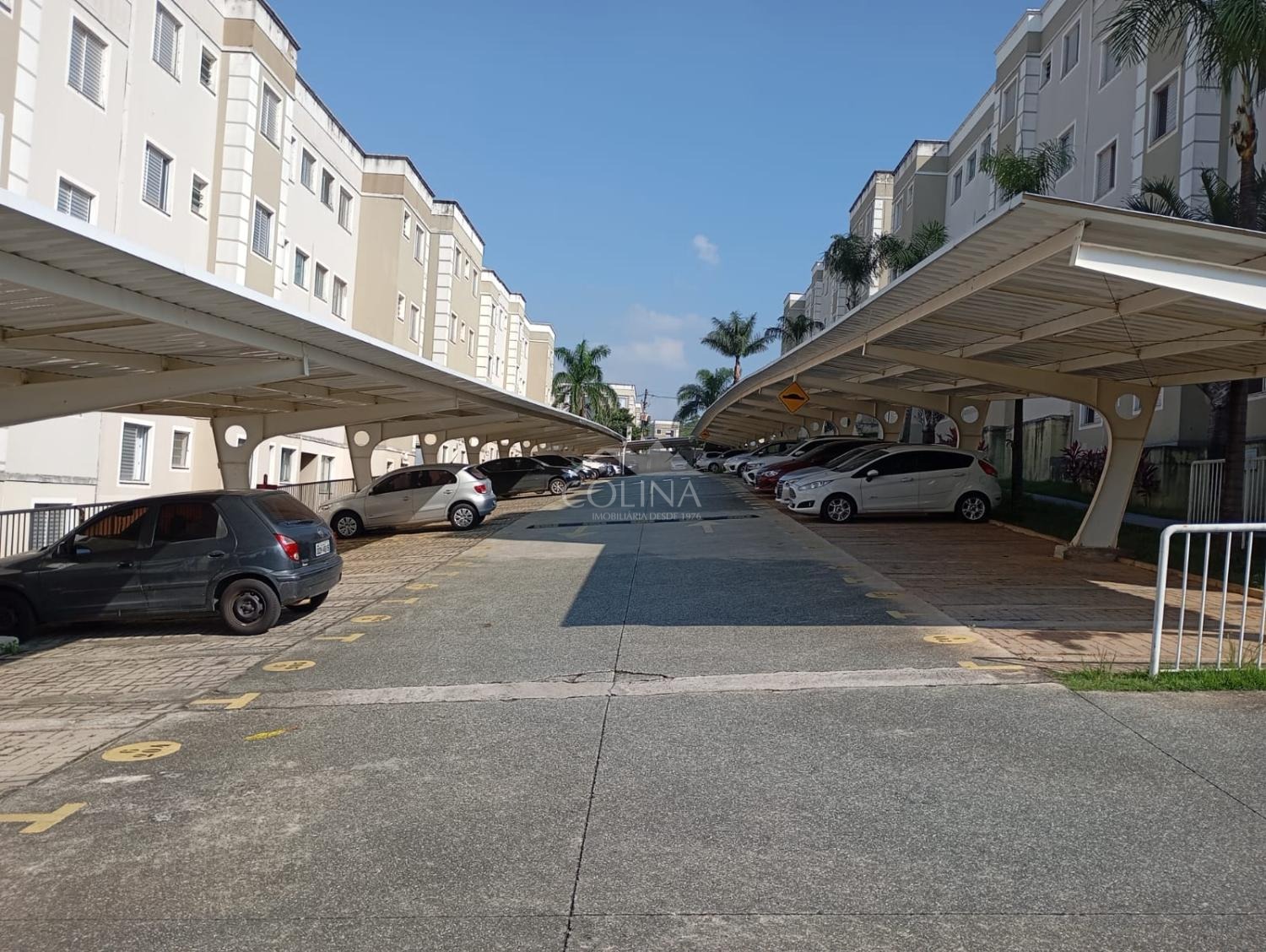 O condomínio possui portaria 24 horas e salão de festas.