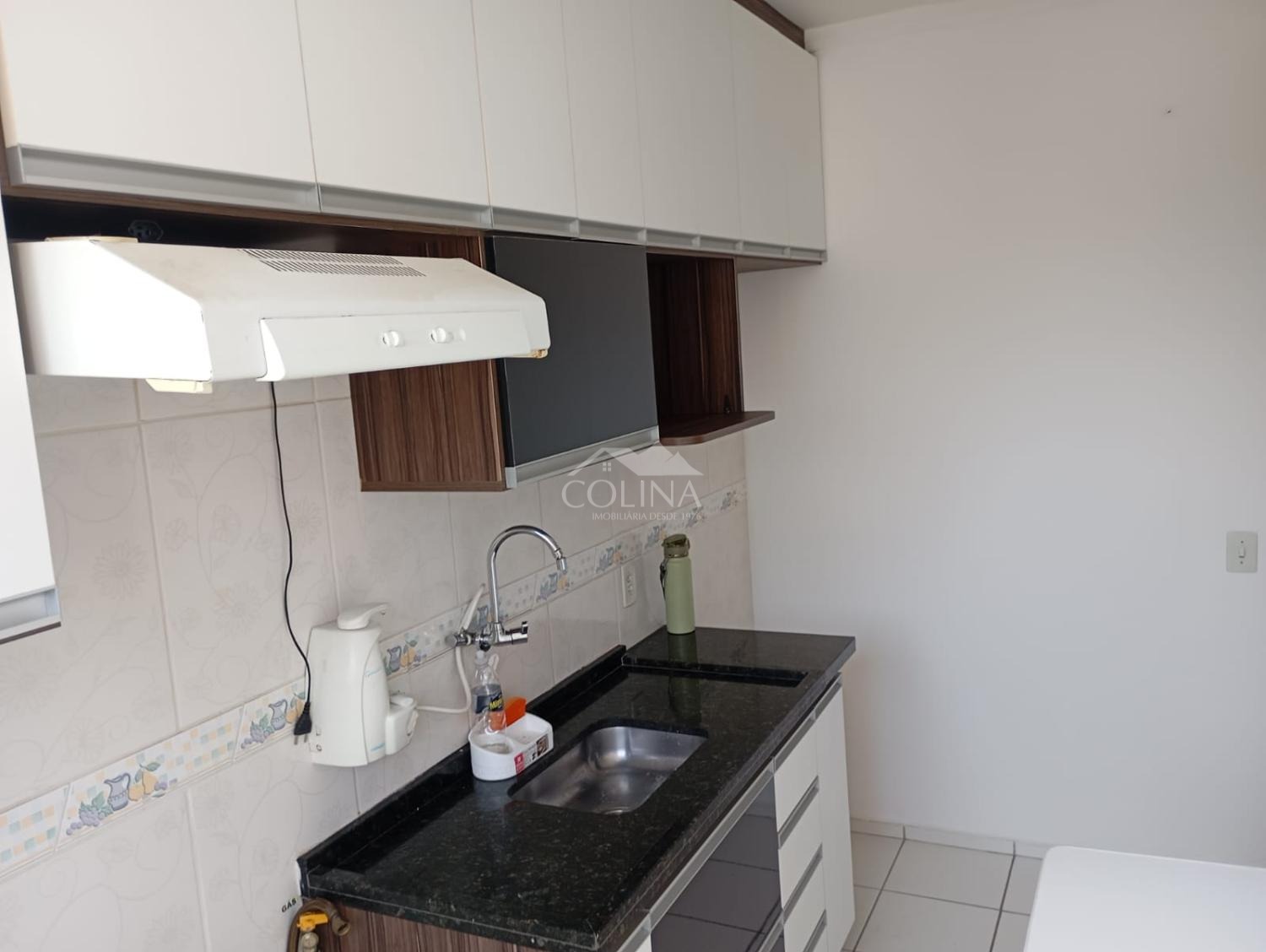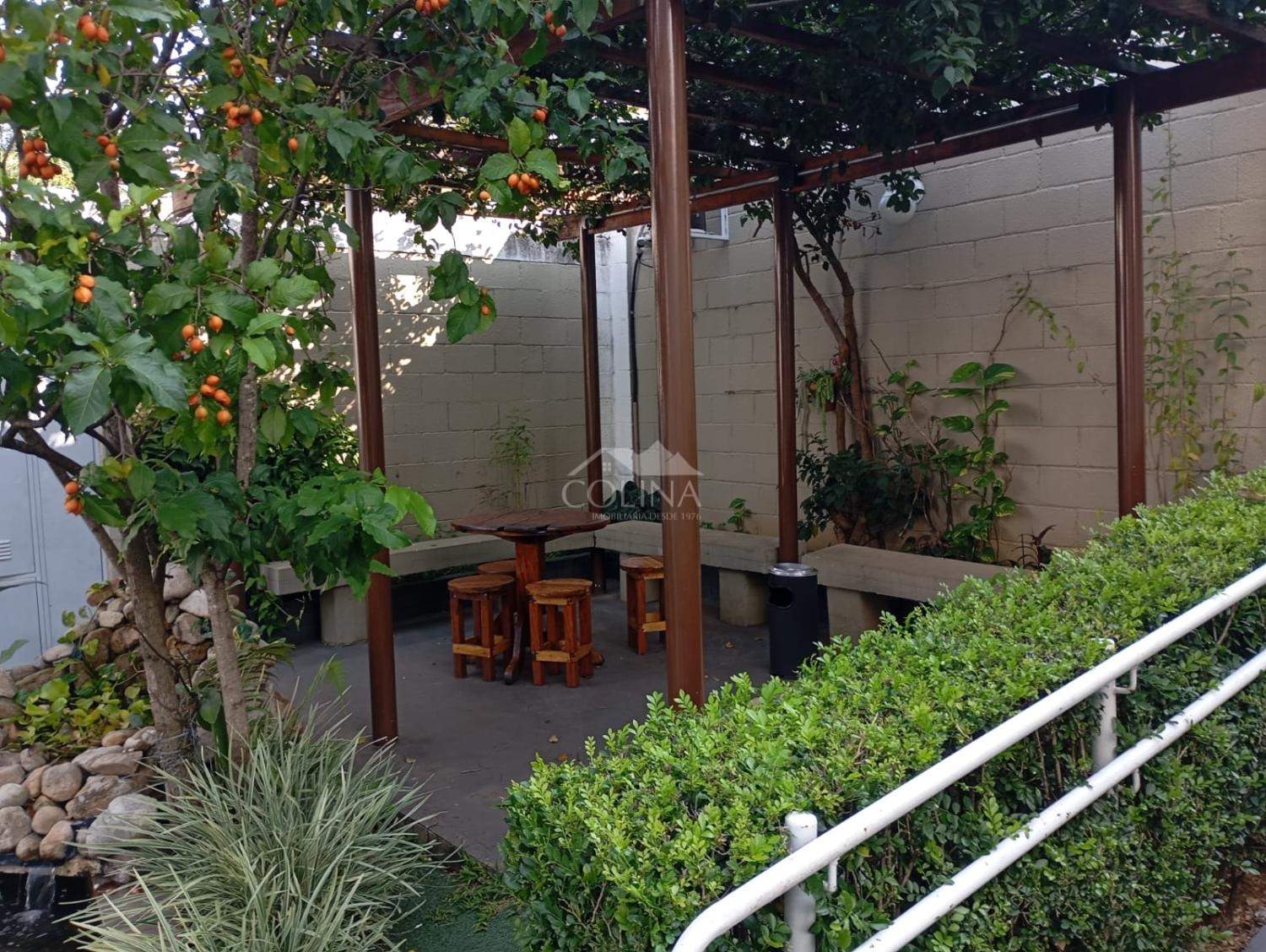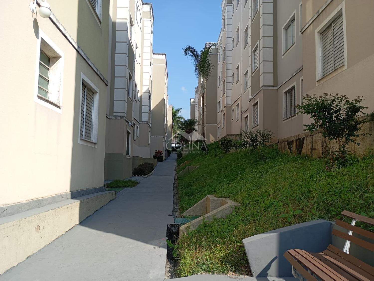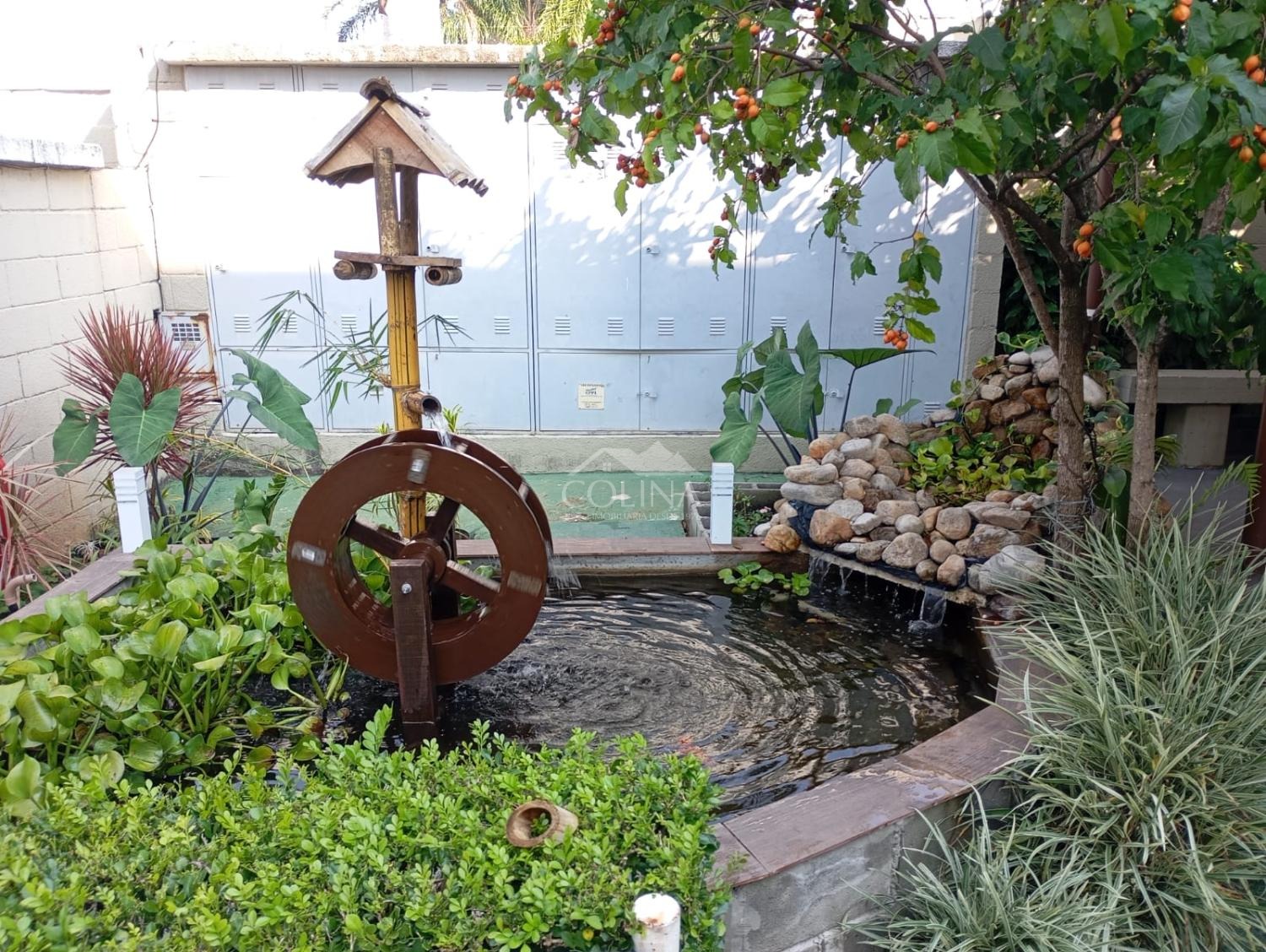 O condomínio possui portaria 24 horas e salão de festas.