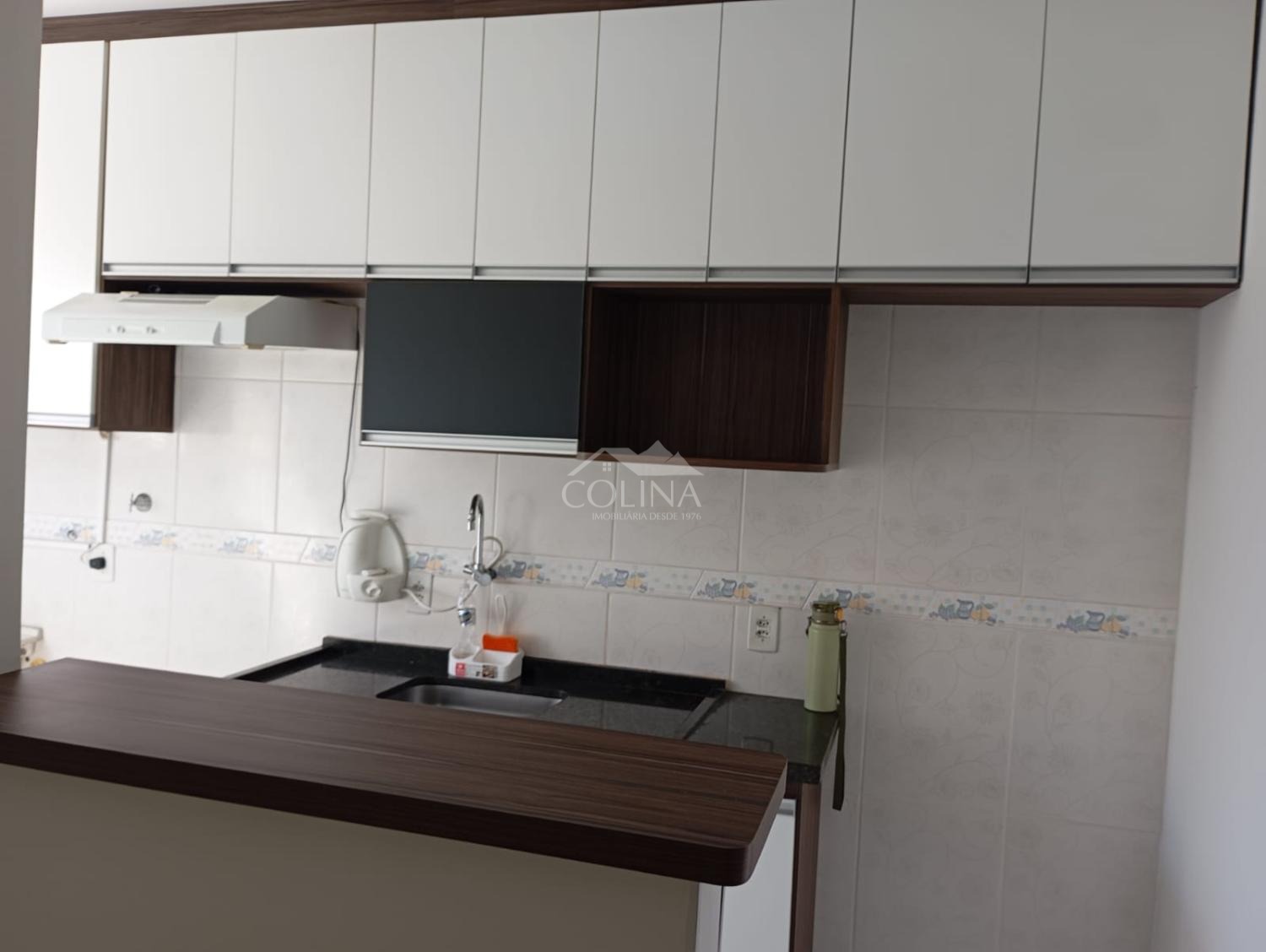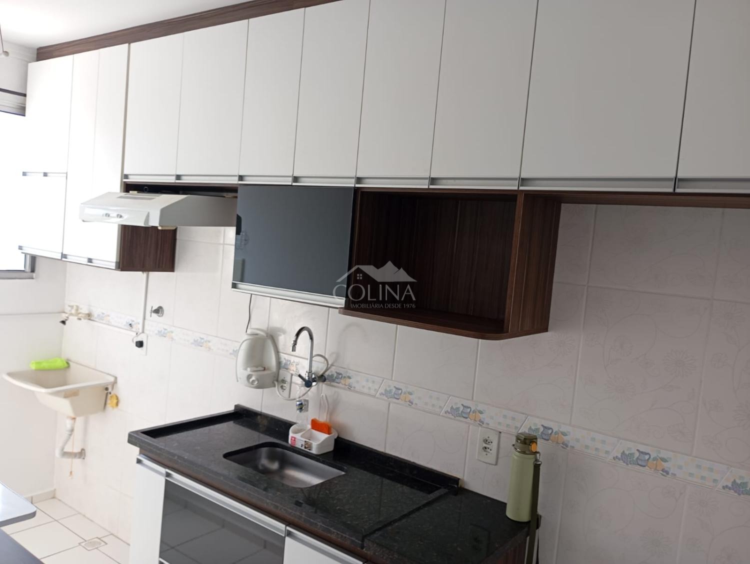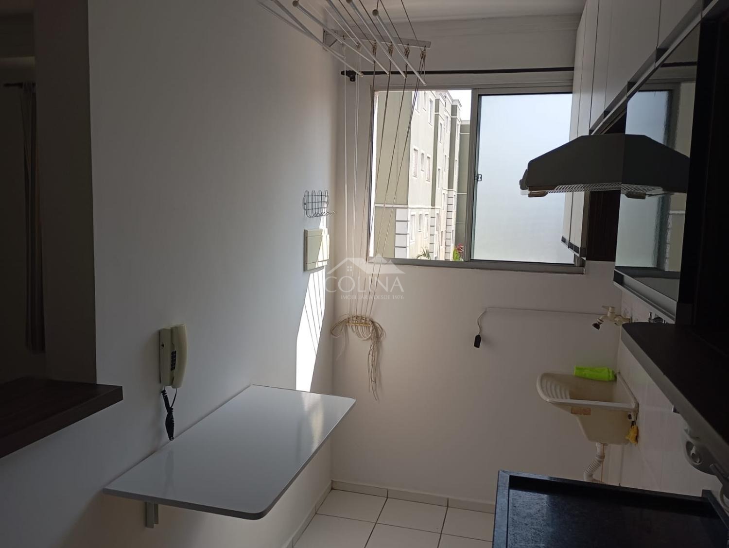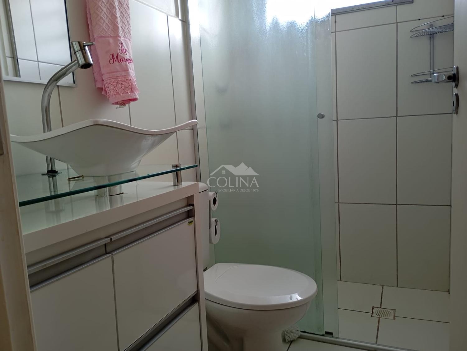 O imóvel conta com 02 quartos, 01 banheiro social, sala 02 ambientes, cozinha com armário e gabinete, área de serviço e 01 vaga de garagem coberta.
