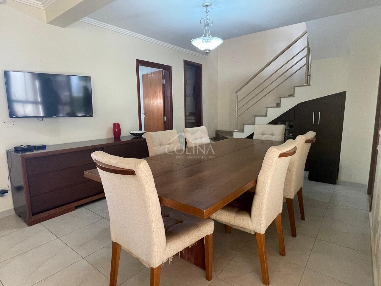 ampla sala de estar/ jantar, lavabo, cozinha planejada, lavanderia, ( 01 suíte no Térreo c/ closet); ótima oportunidade para bem viver: casa arejada, ampla e aconchegante, alto padrão, muito bem cuidada em todos os detalhes de acabamento, como janelas Inglesas; varanda, amplo quintal com piscina, churrasqueira (pia e armário).