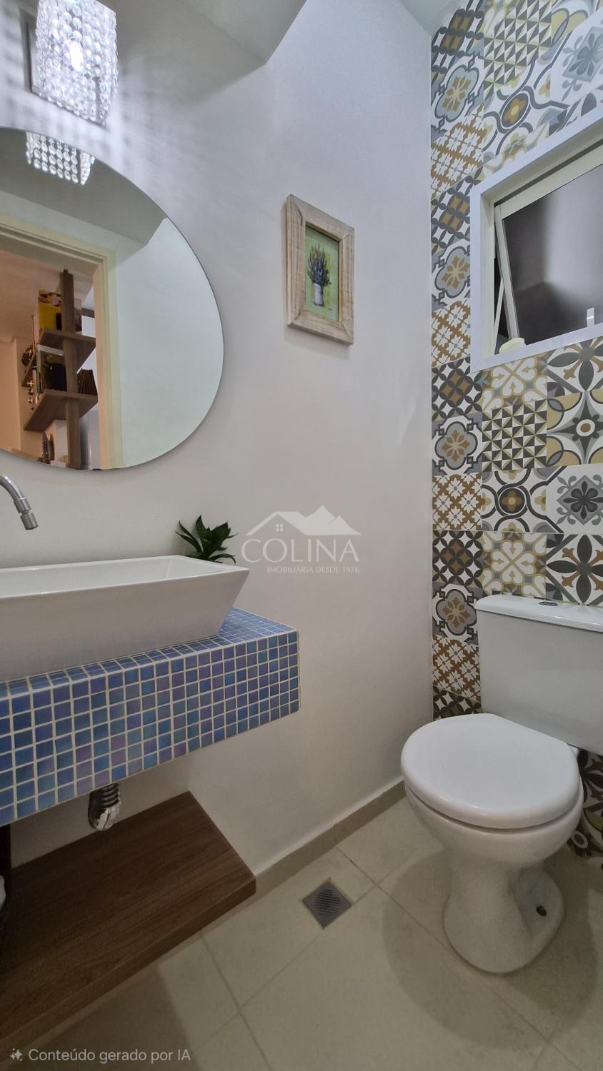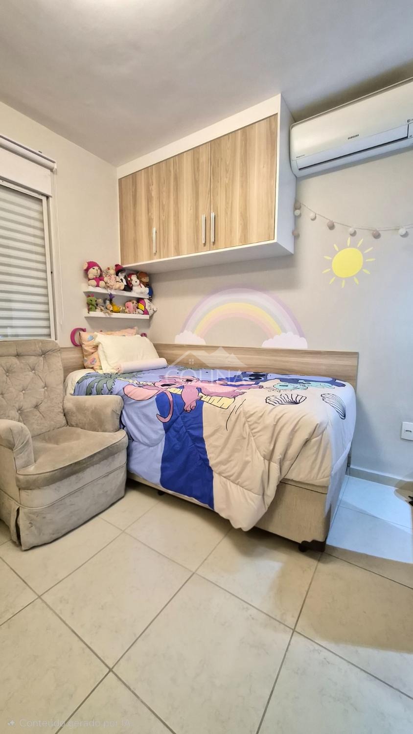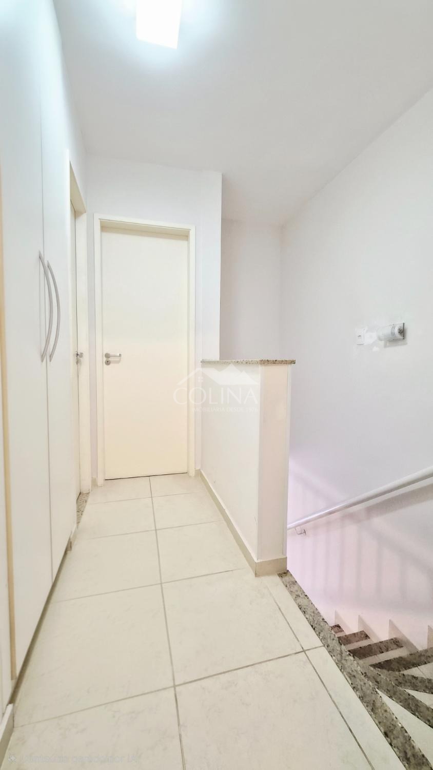 Sobrado a venda em condomínio fechado. Piso superior com 2 quartos (1 com sacada) e banheiro social.