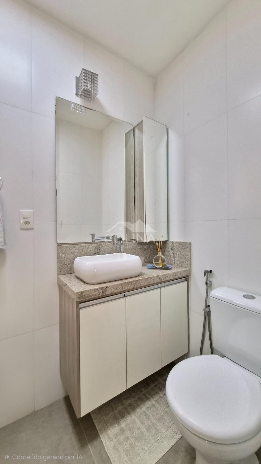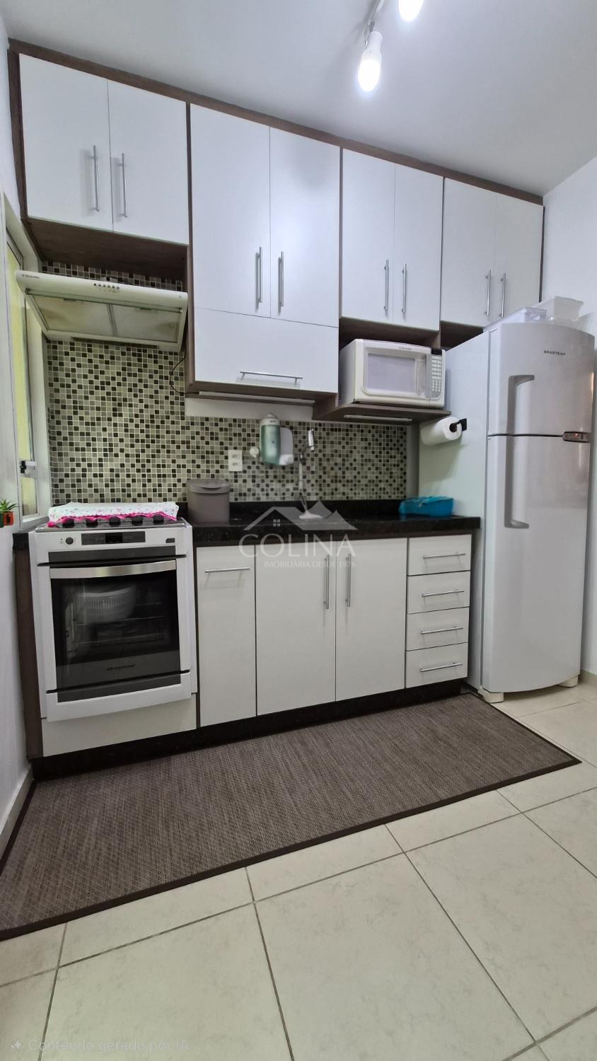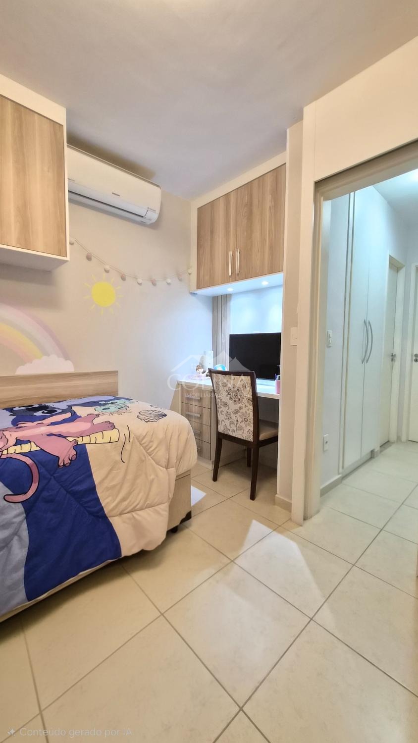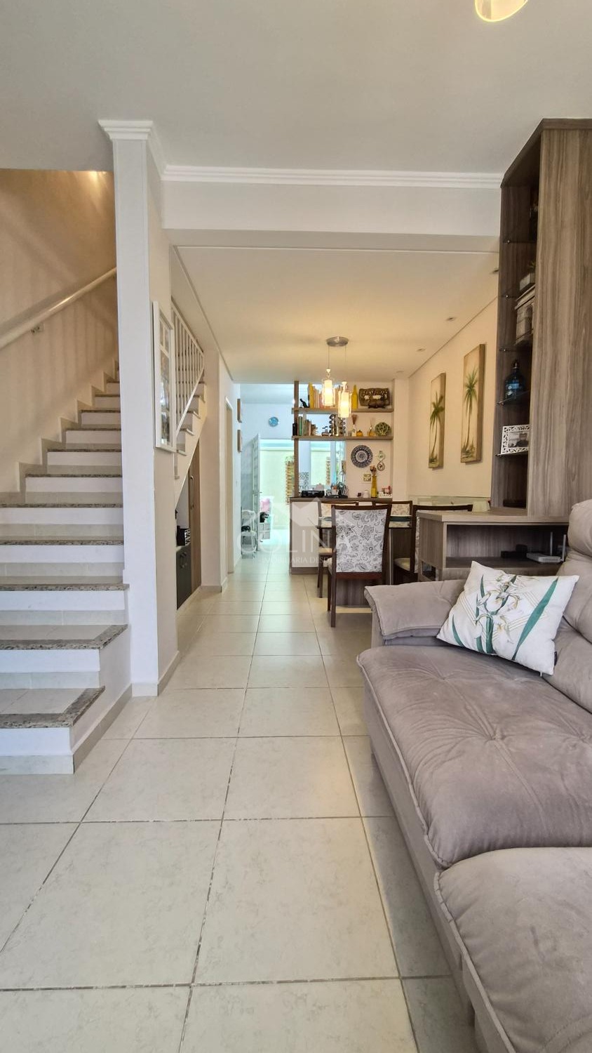 Sobrado a venda em condomínio fechado. Piso superior com 2 quartos (1 com sacada) e banheiro social.