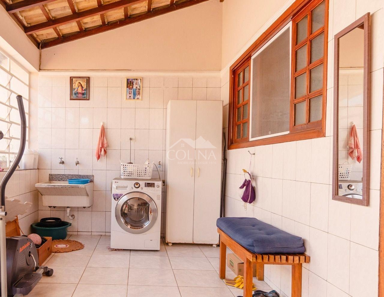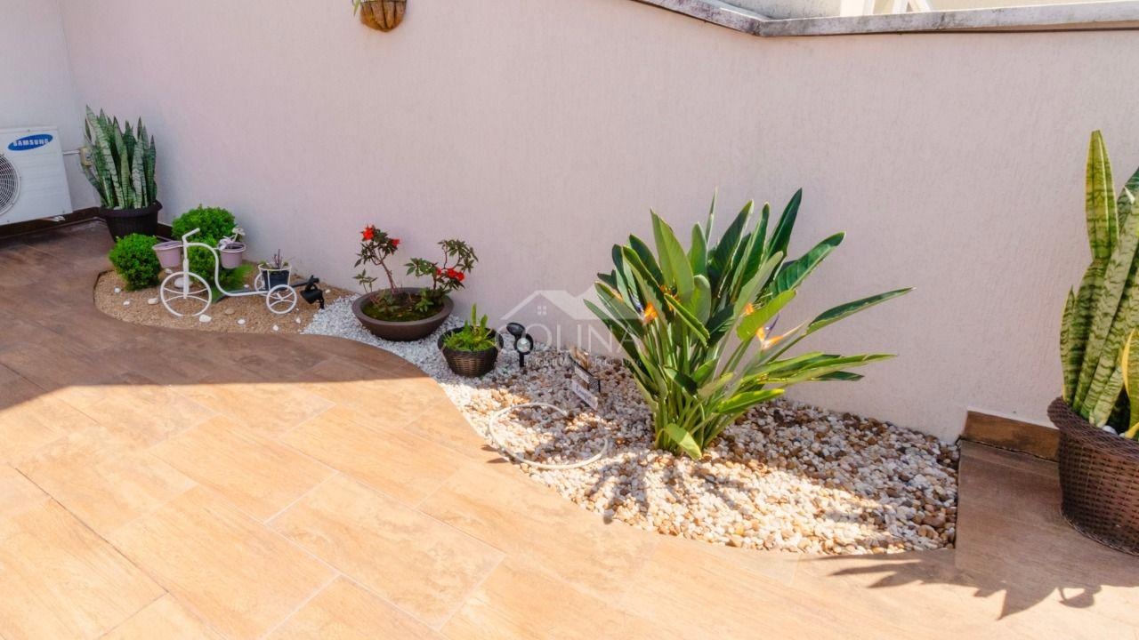 Casa com 3 quartos; 1 suíte ( 2 quartos com sacada) sala de estar e jantar integrado com ar condicionado, jardim de inverno, lavabo, cozinha espaçosa completa, lavanderia coberta, quintal, garagem para 2 carros fechada com portão eletrônico