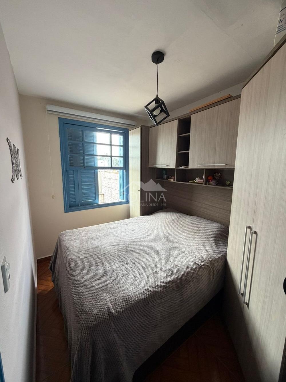 Com 2 quartos e cozinha com armários planejados, 2 banheiros, Varanda, Quintal, Garagem coberta para 1 carro.