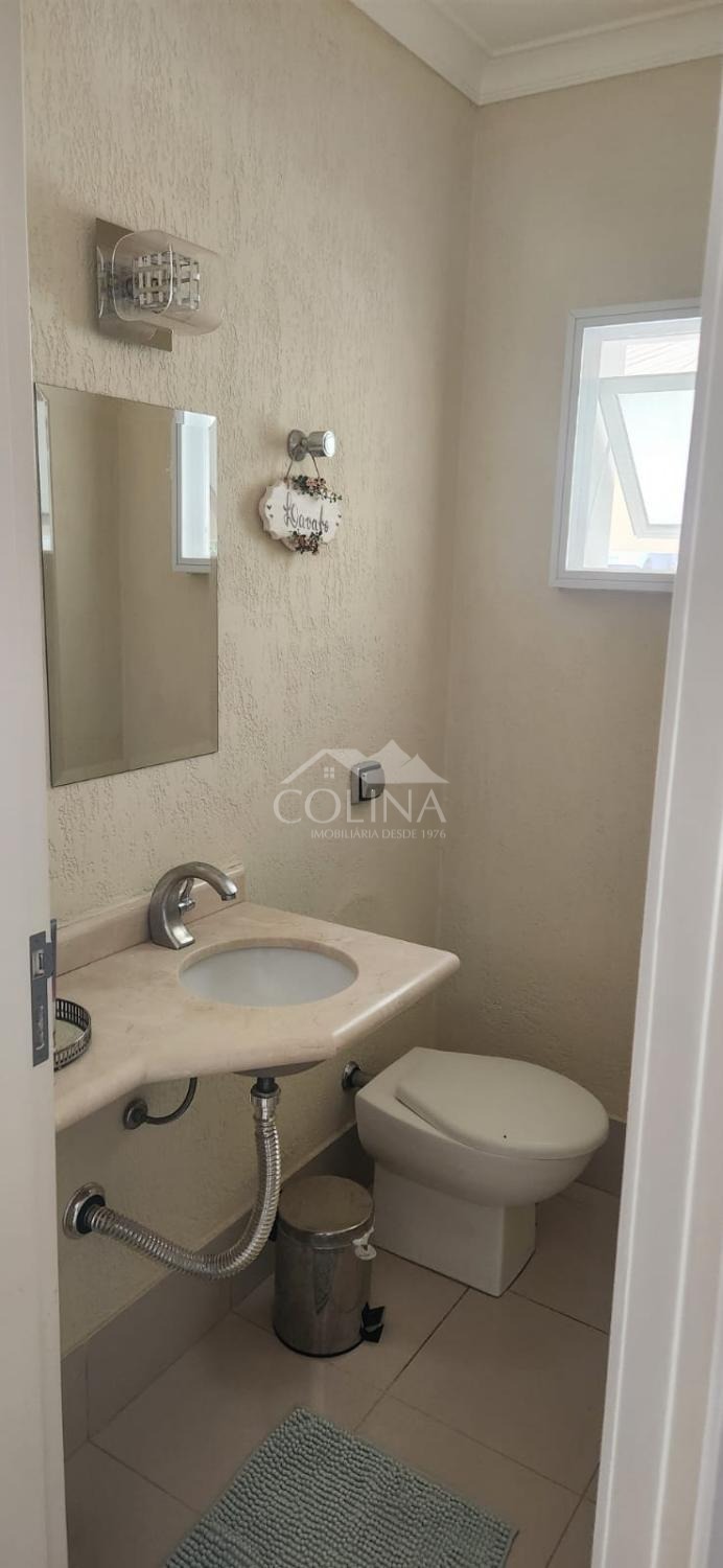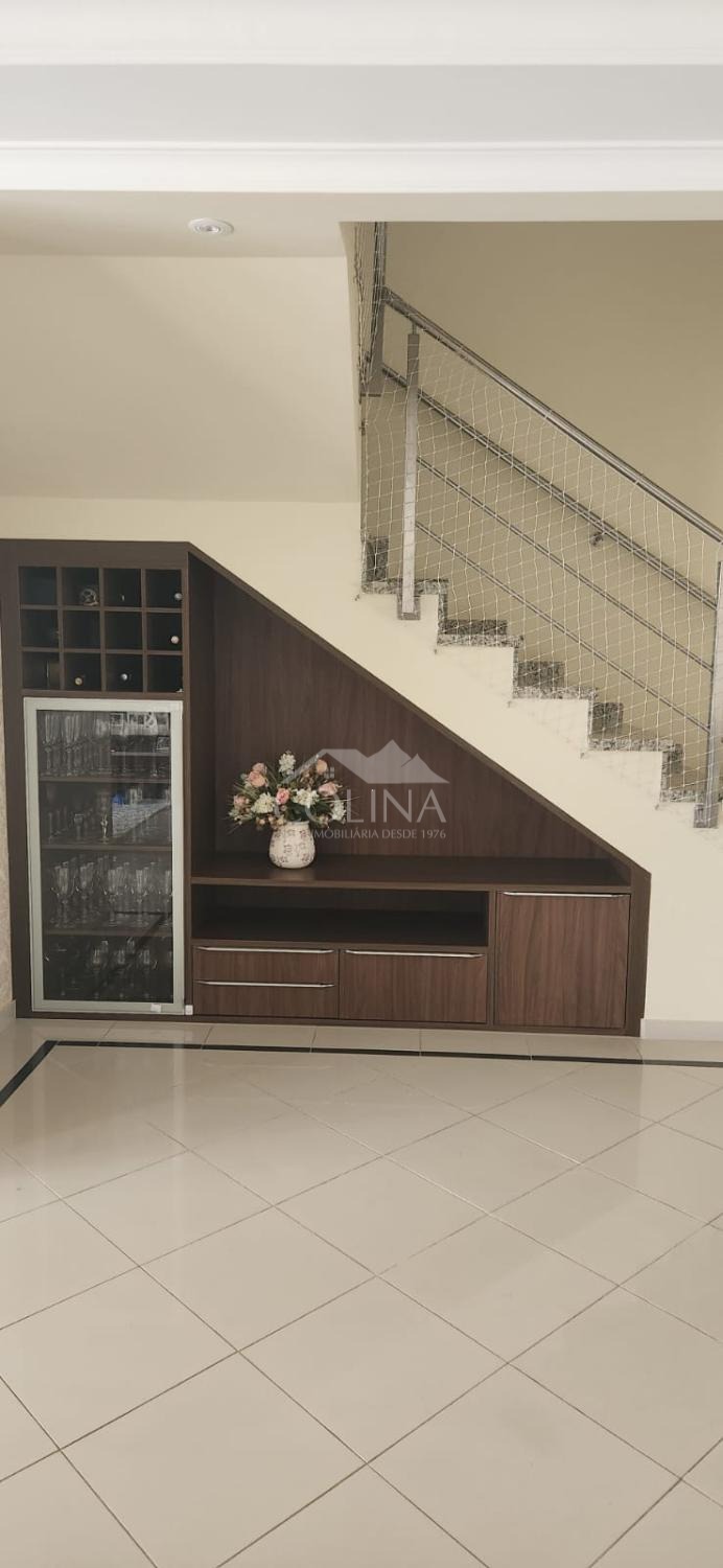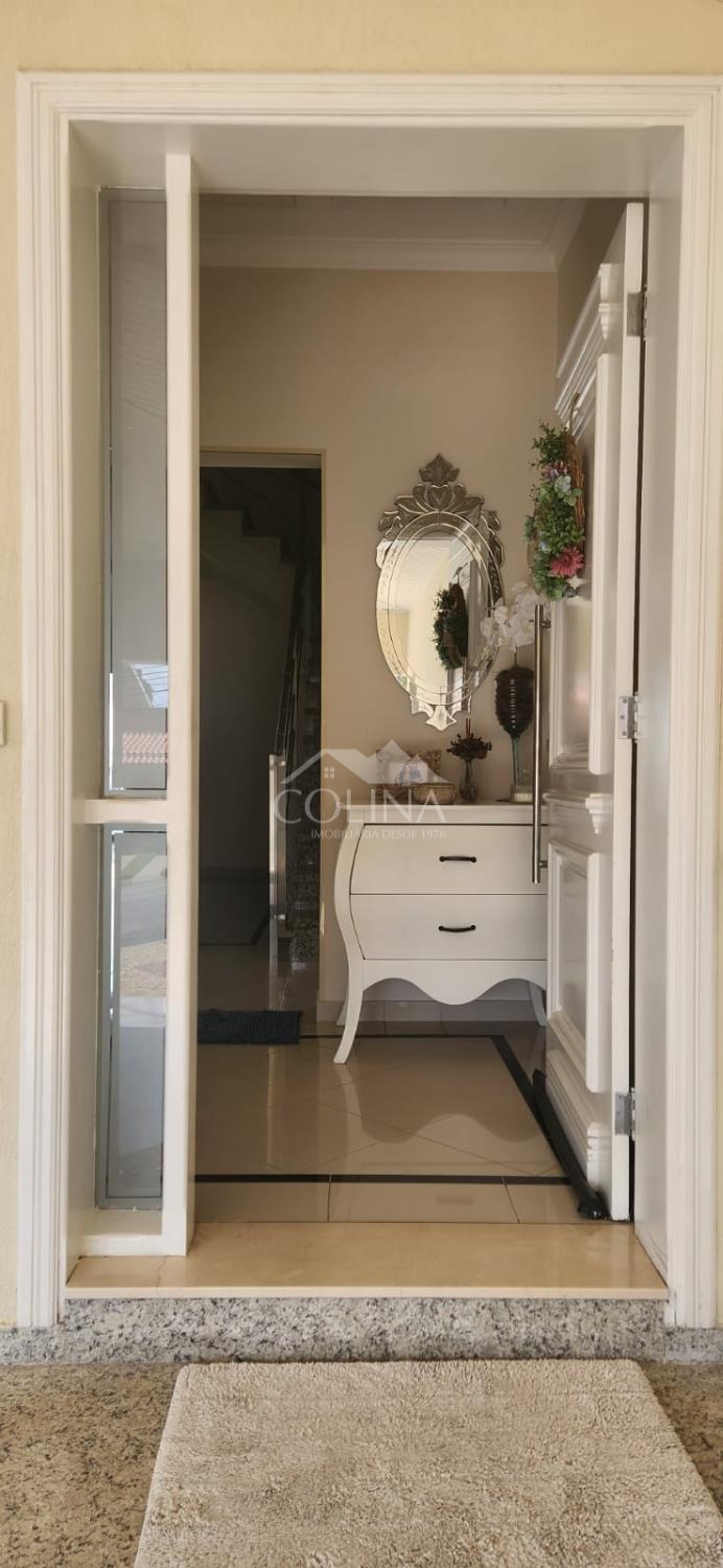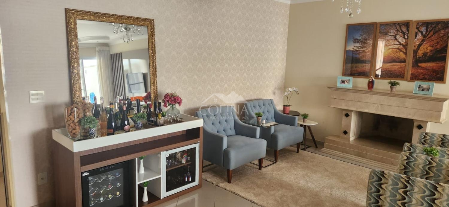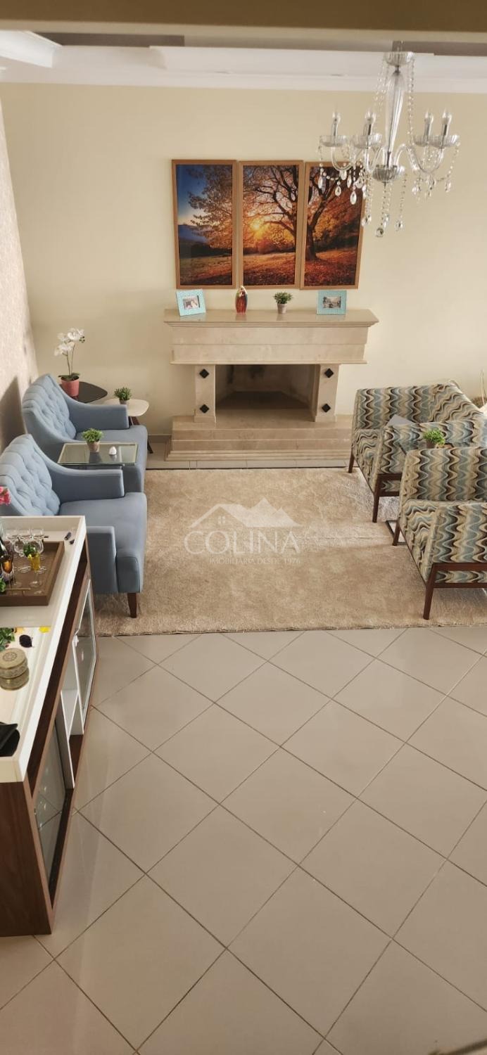 Casa com 380 m² de área construída e 500 m² de área total. Piso superior com 3 quartos suítes, sendo 1 suíte master com hidromassagem e closet, Sala de televisão. Piso inferior com hall de entrada, living com 3 ambientes e lareira, cozinha planejada, sala de jantar, despensa, área de serviço com quintal, piscina aquecida com cascata, área gourmet com ilha, churrasqueira, forno de pizza, cooktop, forno, quintal.