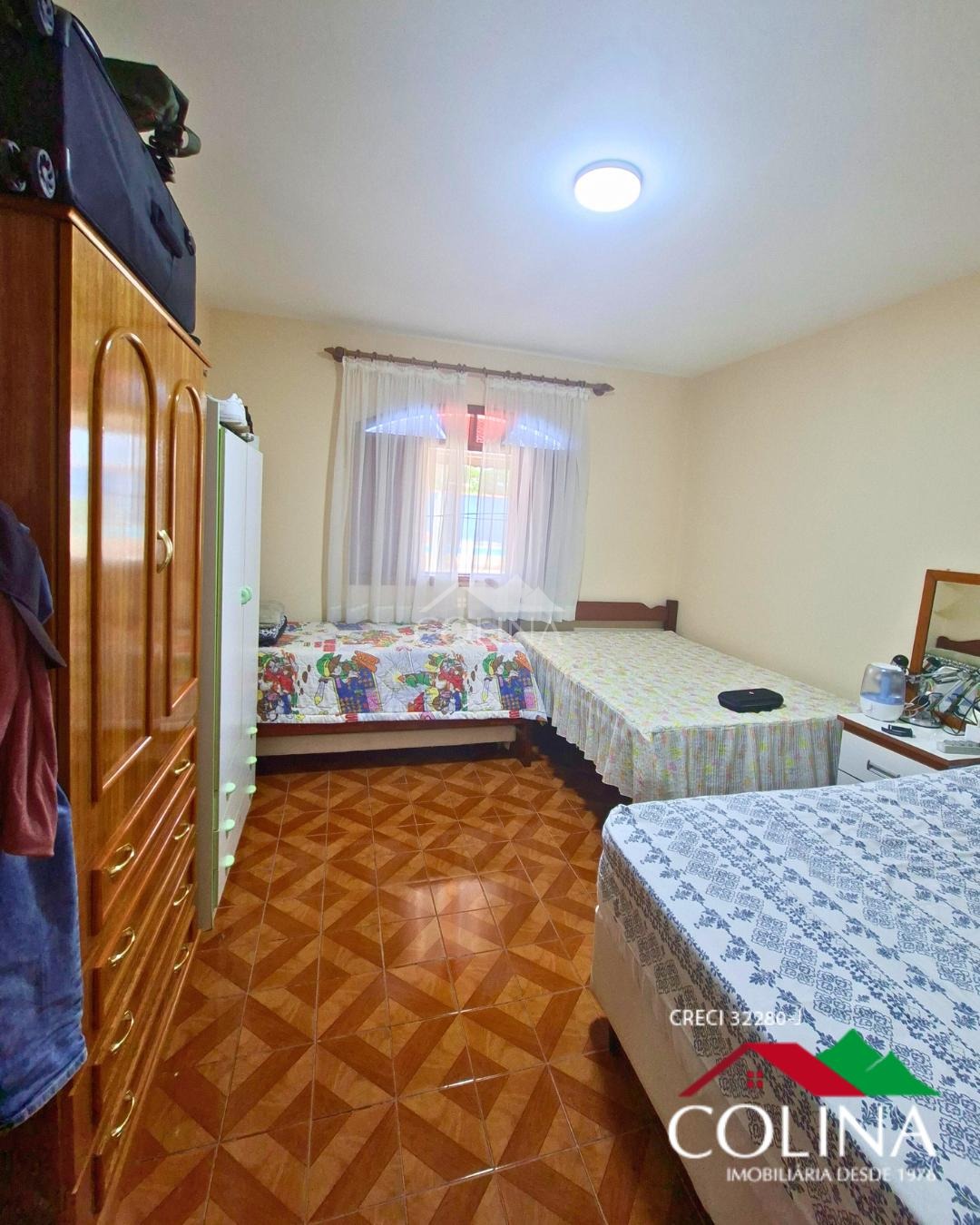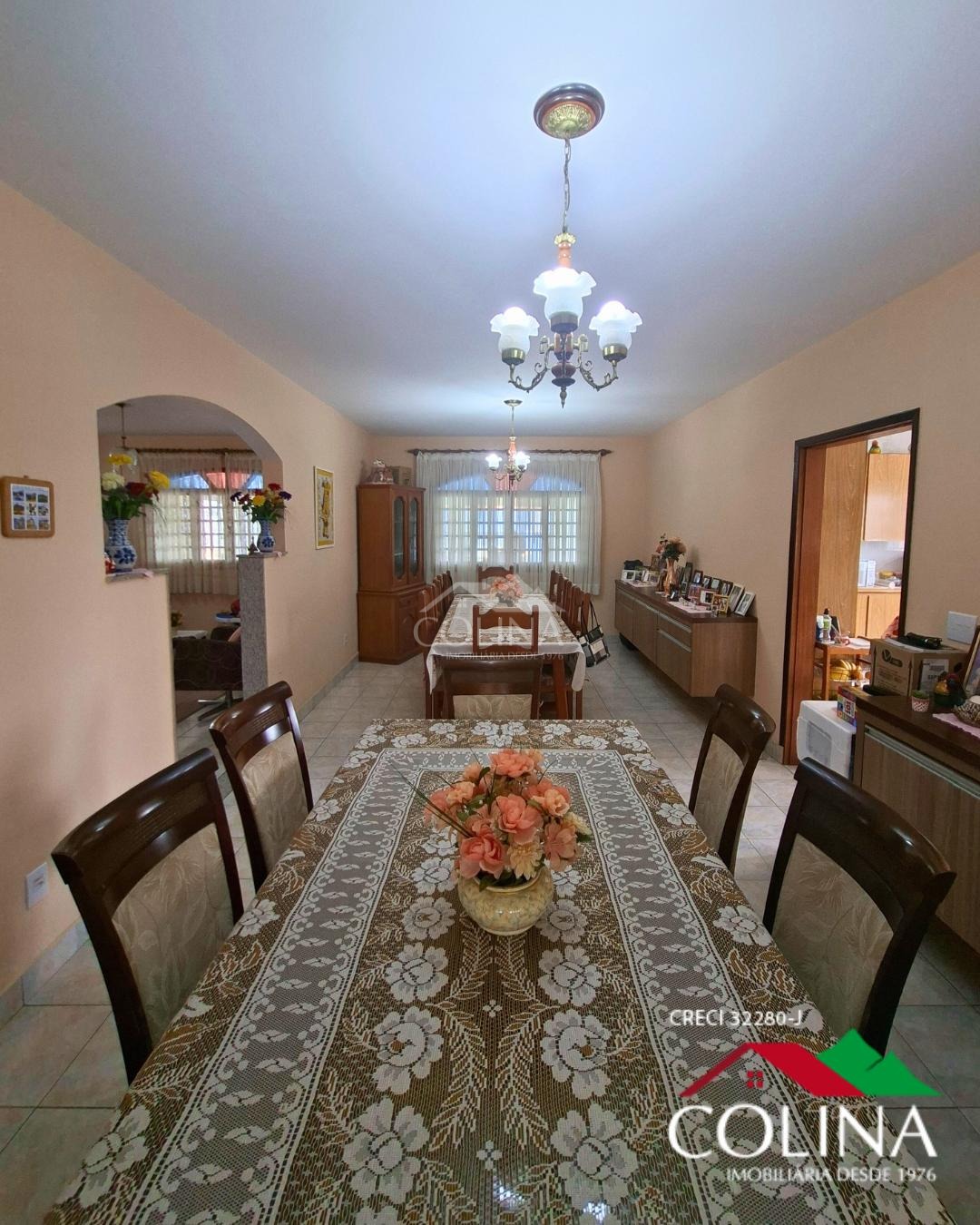 4 quartos sendo 2 com suítes, 3 banheiros, 1 sala de TV, sala de estar, sala de jantar para 18 pessoas,