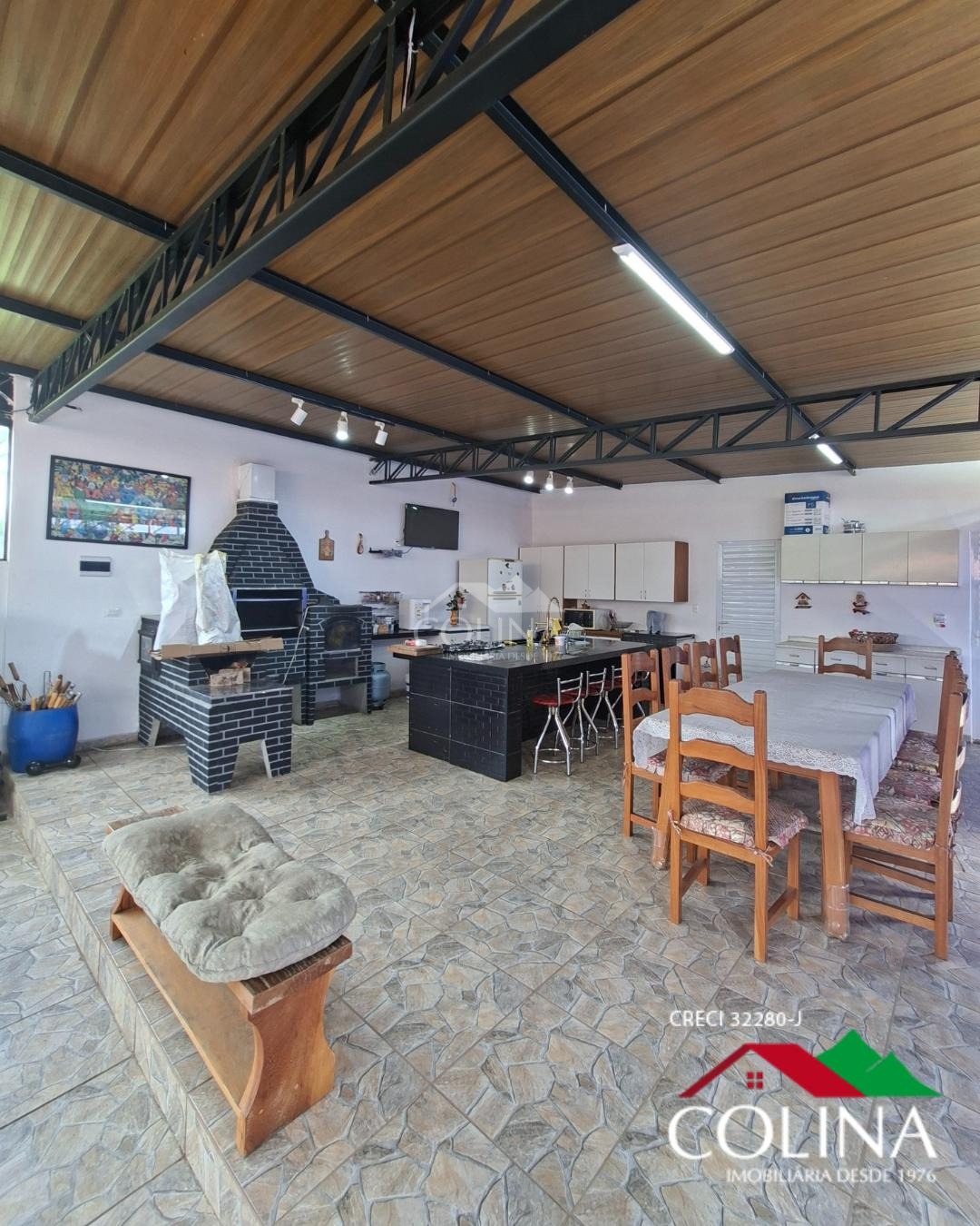 1 escritório, uma ampla cozinha, 1 sala para acomodar 15 pessoas. e uma área gourmet para 40 pessoas ,1 piscina de 9m² aquecida, com forno de pizza, forno de pão, fogão a lenha e churrasqueira, toda avarandada, quintal pomar com 20 pés de frutas variadas, horta de temperos, garagem para 5 carros. Energia solar. Portão eletrônico.