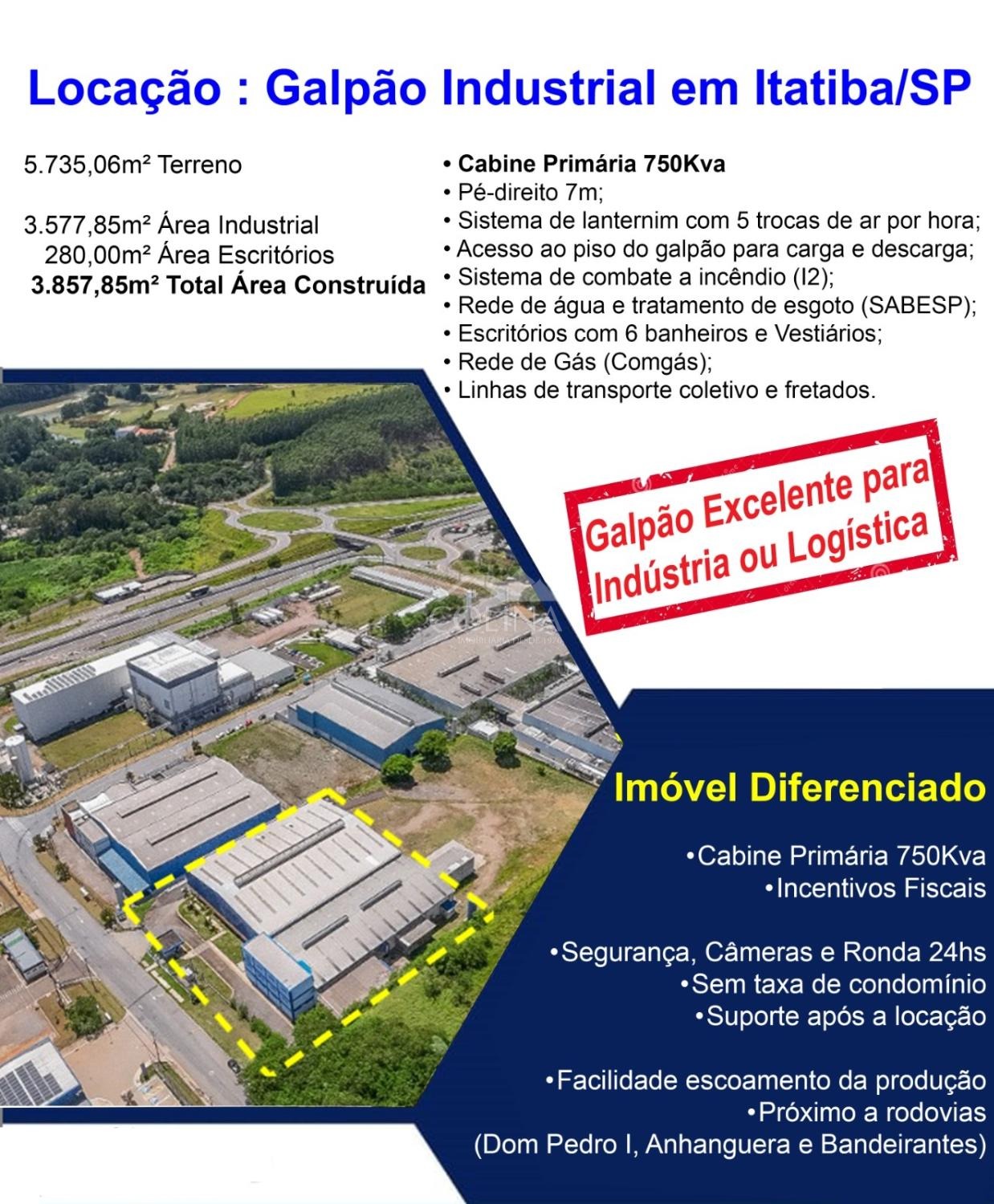 Empreendimento com frente para Rodovia Constâncio Cintra. Localização privilegiada no Distrito Industrial Alfredo Relo de Itatiba/SP, uma das regiões mais produtivas e modernas do Brasil.