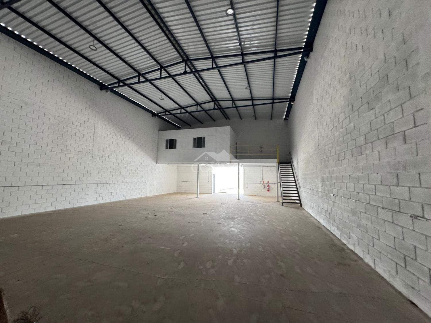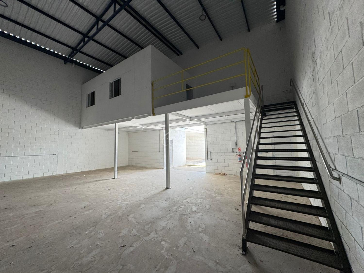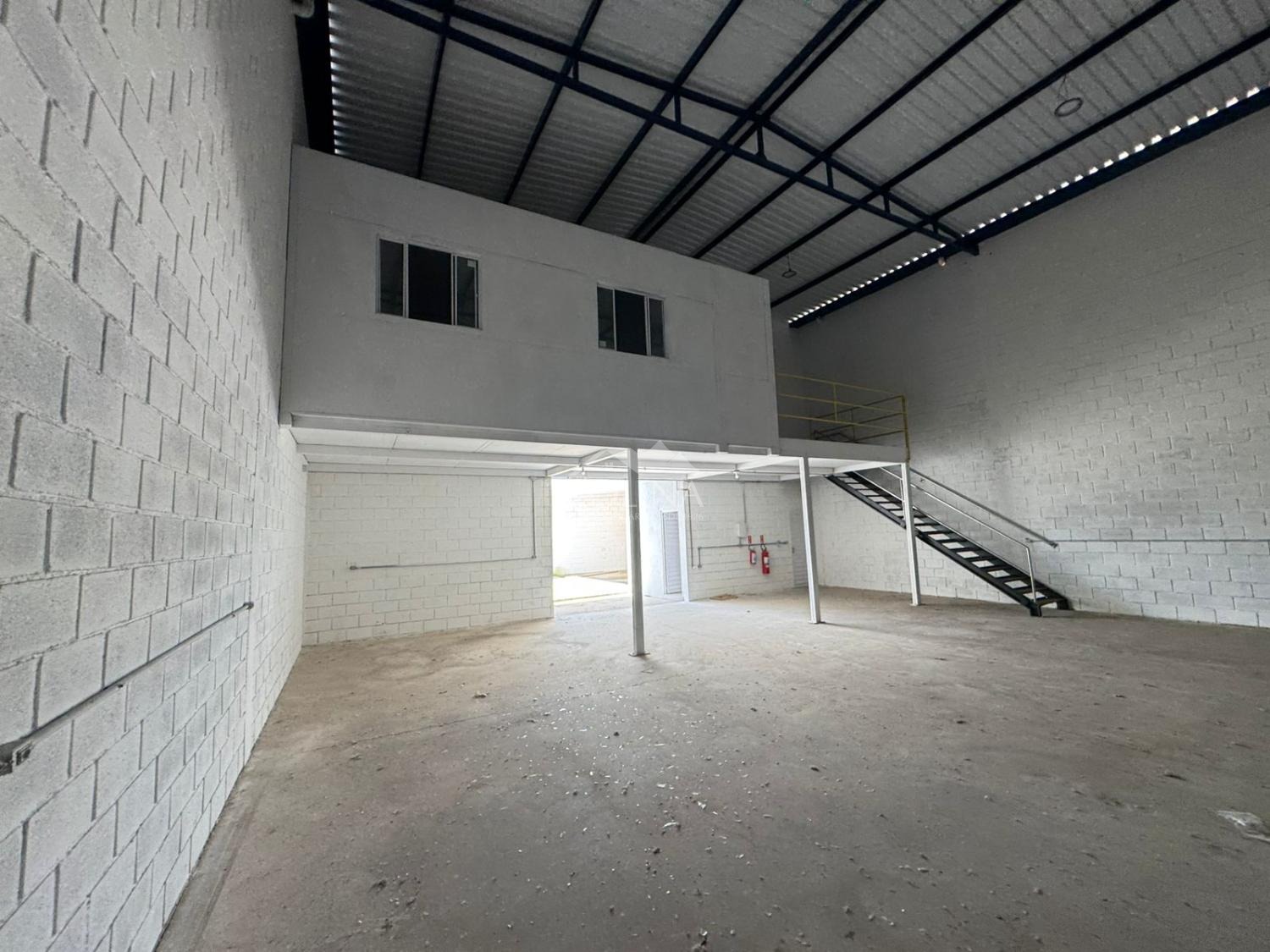 Coberturas na frente e nos fundos, Portões automáticos (dimensões: 4,6 x 4,7 metros), Telhas acústicas para conforto térmico e redução de ruído, Instalação elétrica pronta, Mezanino de 4m x 12m, Área administrativa de 4m x 8m, 2 banheiros na área administrativa (masculino e feminino), 4 banheiros no galpão (masculino) + 2 banheiros femininos, 2 vestiários