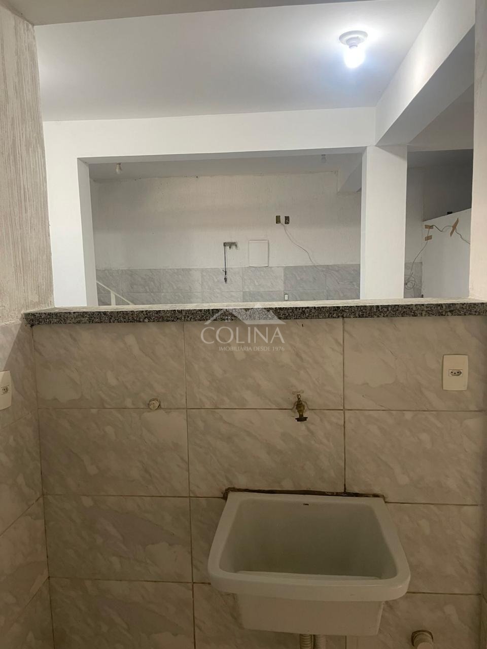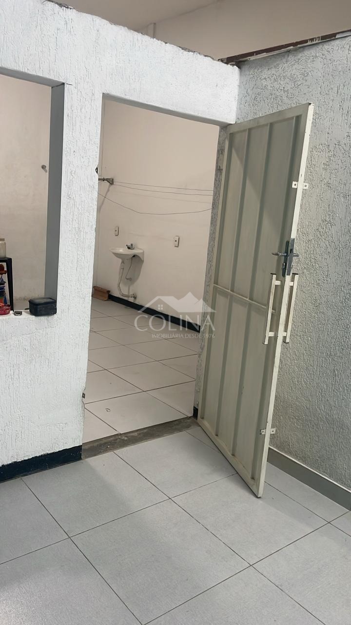 Salão amplo, sala e pia, banheiro, tanque.
